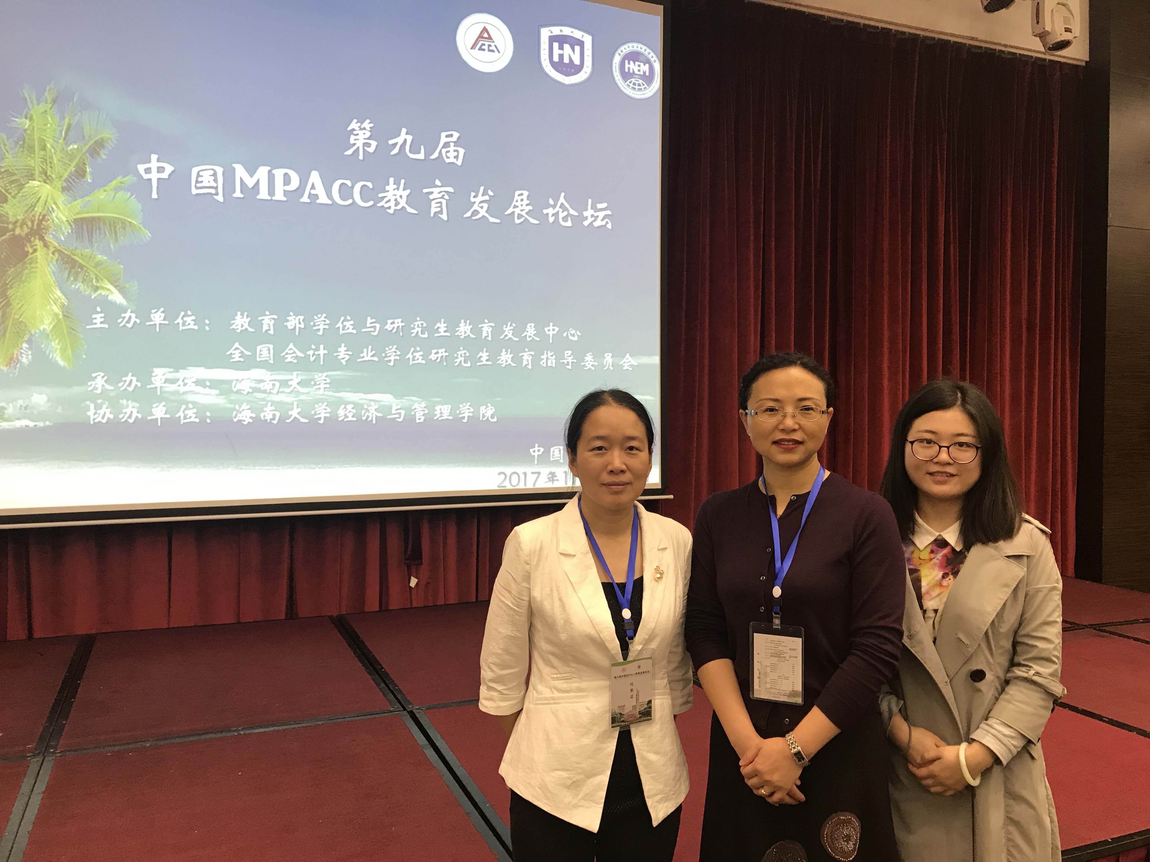会计学院师生参加第九届中国MPAcc教育发展论坛 时间:2017年11月13日 作者:会计学院 吕孟琦 编辑:lss 点击: 2017年11月9日至10日,由教育部学位与研究生教育发展中心、全国会计专业学位研究生(Mpacc)教育指导委员会主办,海南大学承办、海南大学经济与管理学院协办的第九届中国Mpacc教育发展论坛在海口举行,来自全国Mpacc高校的多位专家学者参加了此次论坛。我校会计学院阮滢教授、闫明杰博士及硕士研究生吕孟琦参加了此次论坛。 中国人民大学商学院副院长宋华、教育部学位中心项目主管李征博分别作了题为《如何让学习变得更精彩案例教学的组织》和《案例教学多元化呈现模式的新探索:以视频为例》的主题报告。之后,论坛分财务会计案例教学、财务管理案例教学、管理会计案例教学、审计案例教学、案例型论文等个分论坛进行学术交流和探讨。闫明杰老师在管理会计案例教学分论坛对《海尔自主品牌战略实施案例》进行了报告。 2017年11月13日 资讯快报 上一条:加强校企合作 推动工业工程的协同创新:河南省机械工程学会工业工程专业委员会理事会议在我校召开 下一条:外国语学院成功举办第九届河南省翻译竞赛 【关闭】