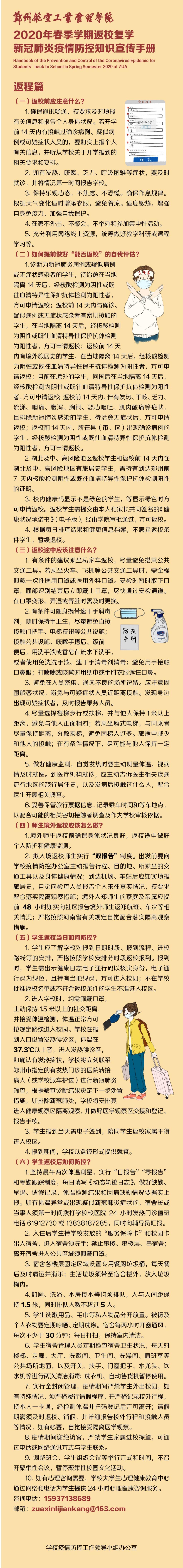 2020春季学期返校复学新冠肺炎疫情防控知识宣传手册•返程篇 时间:2020年05月11日 作者: 编辑:新闻中心 点击: 2020年05月11日 资讯快报 上一条:2020春季学期返校复学新冠肺炎疫情防控知识宣传手册•科普篇 下一条:2020春季学期返校复学新冠肺炎疫情防控知识宣传手册•入校篇 【关闭】