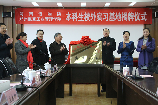 3月14日,我校与河南省博物院实习基地签约仪式在河南省博物院举行。河南省博物院副院长丁福利、博物院社会教育部主任林晓平,郑州航院副院长贺金社、相关部门负责人以及学生代表参加了揭牌仪式。