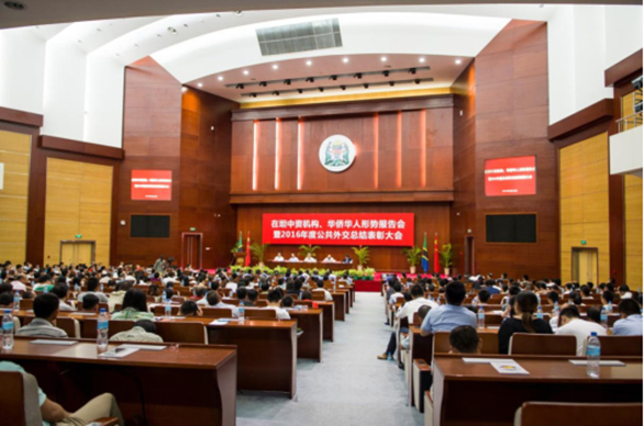 当地时间3月12日,坦桑尼亚千余名华人华侨齐聚坦桑尼亚尼雷尔国际会议中心,参加由中国驻坦大使馆召开的“在坦中资机构、华人华侨形势报告会暨2016年度公共外交总结表彰大会”。郑航—多多马大学孔子学院获“2016年度微信平台先进集体”荣誉称号。