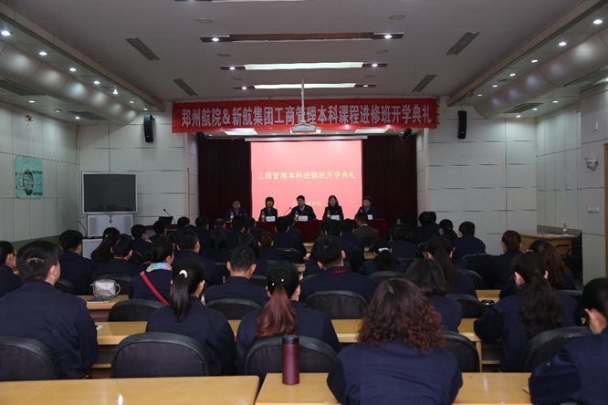 3月19日,郑州航院—新航集团工商管理本科班在新航集团人力资源部培训中心四楼会议室举行开学典礼,这是我校首次与企业合作举办本科班,是我校继续教育深入、融入航空企业的一次有益探索。