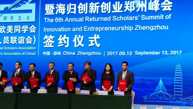 9月13日,在欧美同学会第六届年会暨海归创新创业郑州峰会上,作为现场签约的两所高校之一,我校与德国弗莱贝格大学签订了“共建航空功能材料与先进制备技术国际联合实验室合作框架协议”。