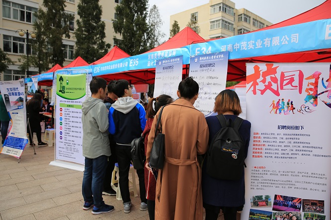 10月18日,2018届毕业生秋季校园招聘会在东校区中心广场举办,共吸引了包括郑飞集团、富士康科技集团、格力电器股份有限公司等在内的近500家企事业单位参加,共为应届毕业生提供16000多个就业岗位。