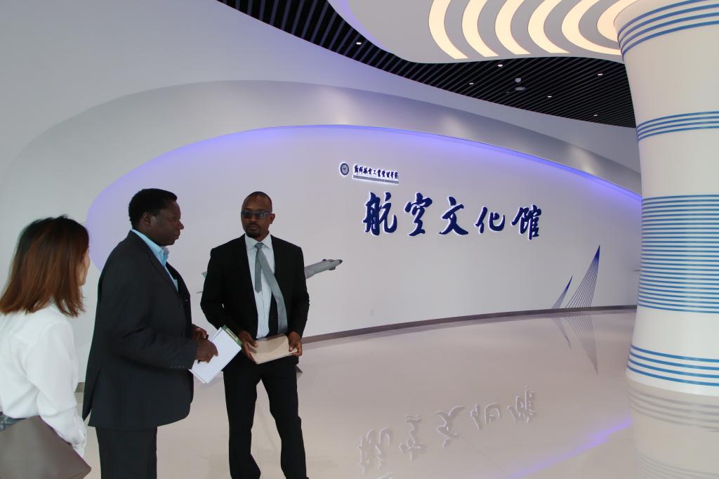 会后,Zacharia Mganilwa校长一行参观了我校虚拟仿真中心和航空文化馆。