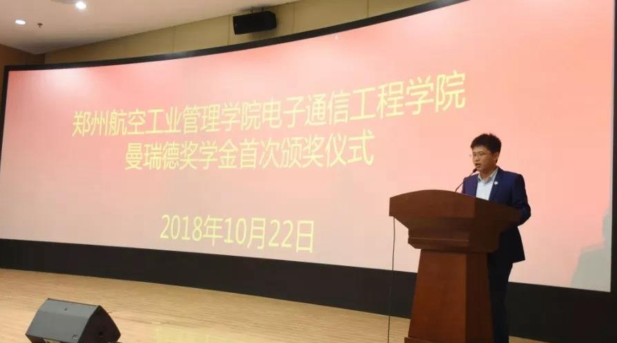 饮水思源,感恩永存。10月22日,校友单文豪回到母校,参加以其公司名字命名设立的曼瑞德奖学金首发仪式暨郑州航院大学生创新创业导师聘任仪式。副院长赵健出席仪式。