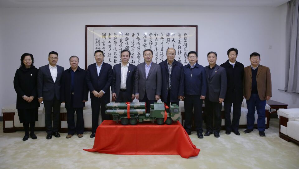 座谈会前,刘跃珍向母校捐赠了“红九”地空导弹模型。