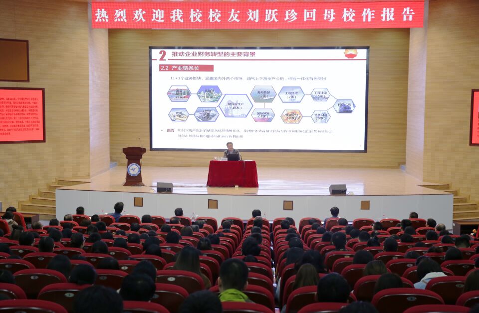 当日下午,刘跃珍应邀在图书馆第一报告厅为我校师生作题为《基于价值的企业财务转型》的学术报告。
