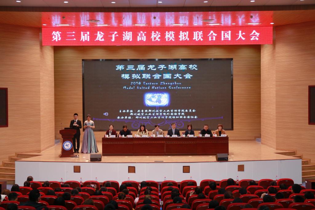 11月16日,由我校主办的第三届龙子湖高校模拟联合国大会开幕式在我校举行。河南省人民政府外事侨务办主任杨玮斌、中国日报社《21世纪报》培训中心主任张珂、副院长赵健及校团委、航空经济发展协同创新中心、外国语学院负责人出席开幕式。郑州大学、河南大学等10所高校的模拟联合国成员应邀参加。