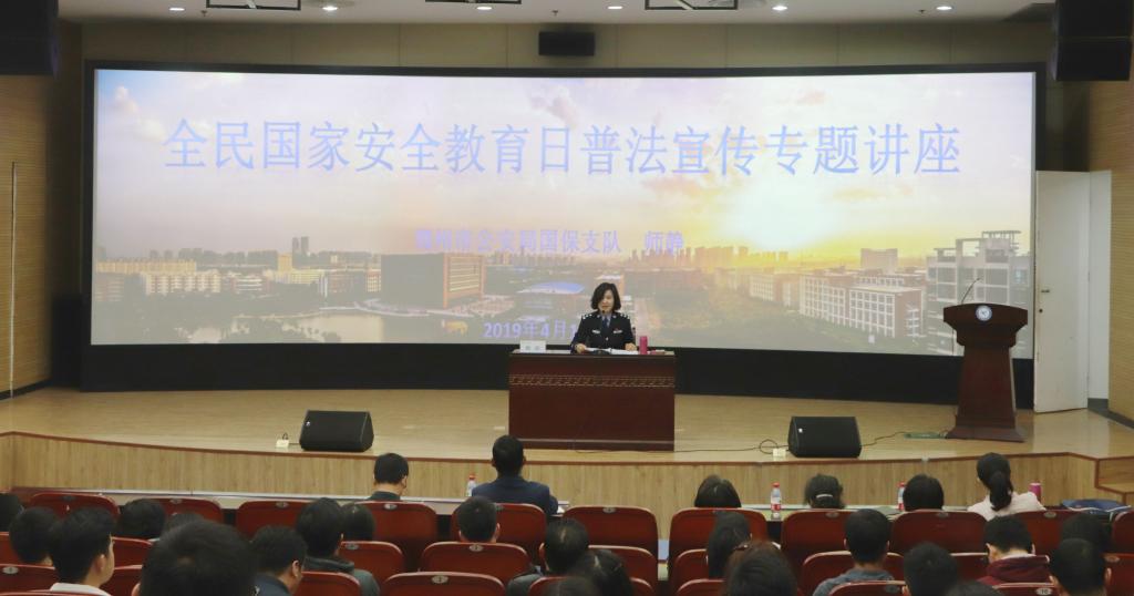 在全民国家安全教育日来临之际,4月11日,我校特邀郑州市公安局国保支队副队长师静做专题讲座,增强广大师生的国家安全意识,提高防范和抵御重大风险的能力。