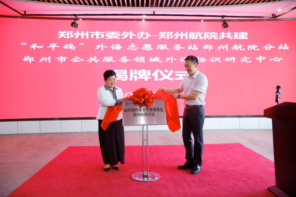 9月24日,我校与郑州市委外办校地合作签约揭牌仪式举行,标志着“和平鸽”外语志愿者服务站郑州航院分站和郑州市公共服务领域外语标识研究中心正式启动建设。