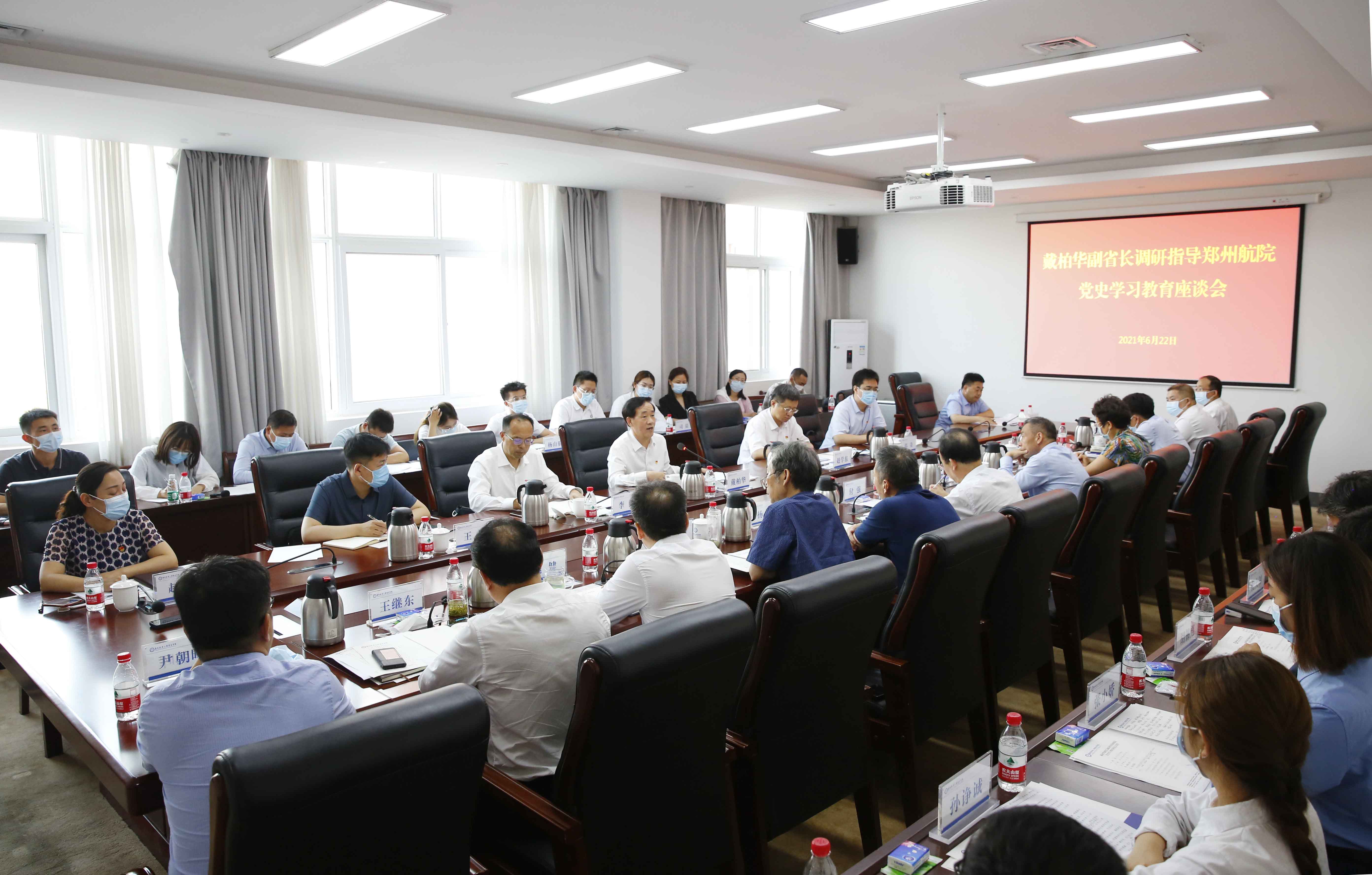 在认真听取大家发言后,戴柏华对我校党史学习教育开展情况给予高度肯定。他认为,郑州航院党委高度重视,按照党中央和省委部署要求,精心组织,悉心安排,扎实推动党史学习教育走深走实;工作开展特色突出,既高标准做好“规定动作”,又高质量谋划“自选动作”,尤其是结合大学生思想实际,充分挖掘红色资源,探索红色文化育人体系,全面落实立德树人根本任务;党史学习教育成效明显,始终坚持问题导向,深入调研、认真梳理、立行立办,着力解决了一批师生工作、学习、生活上的急难愁盼事,增强了师生获得感和幸福感,党史学习教育过程扎实、成效务实,取得阶段性成果。