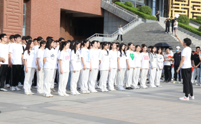 民航学院合唱团在中心广场合唱红色歌曲《十送红军》《保卫黄河》,百名师生党员共同演绎《我们都是追梦人》舞蹈,并重温入党誓词,表达师生对党的百年华诞的深情祝福。