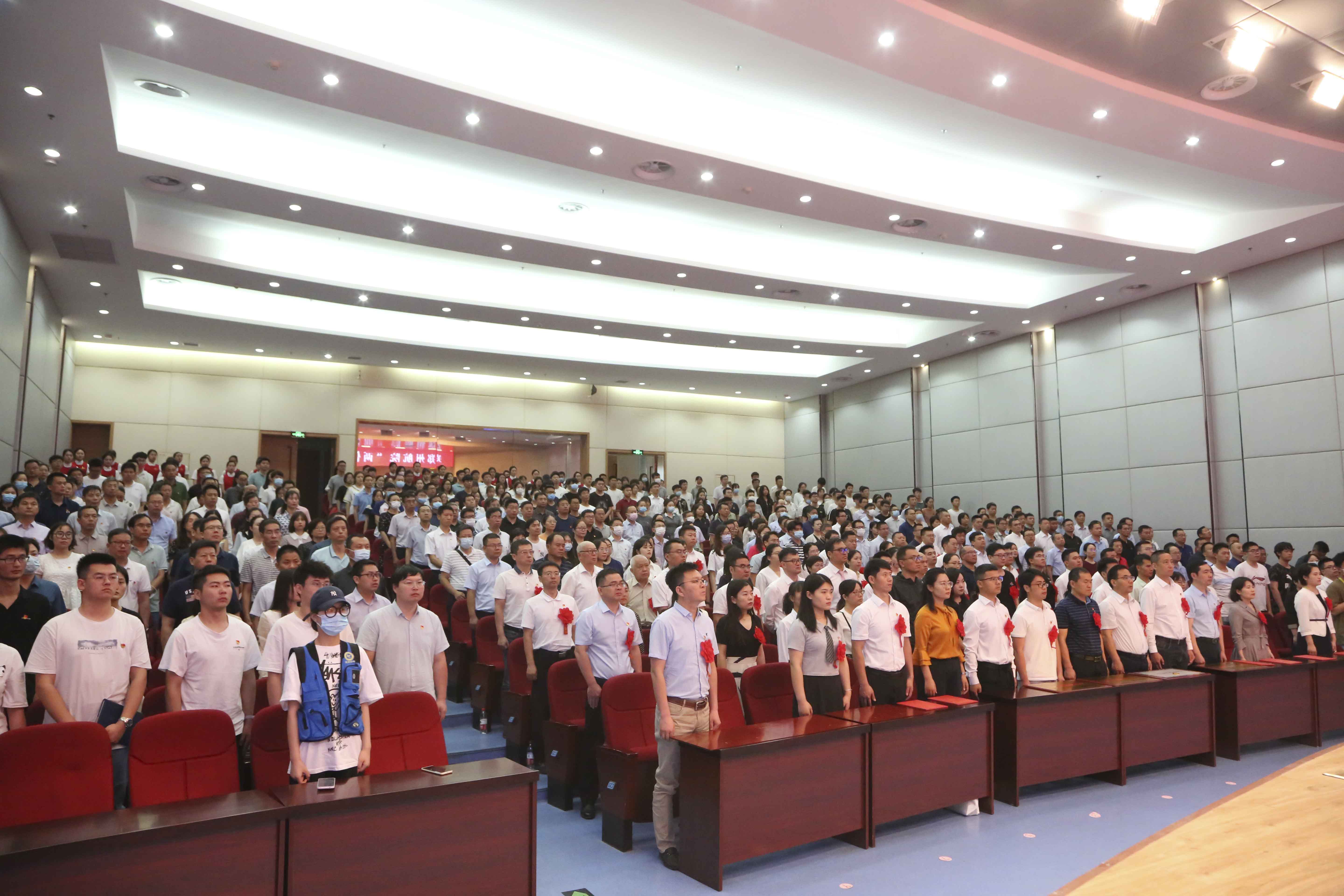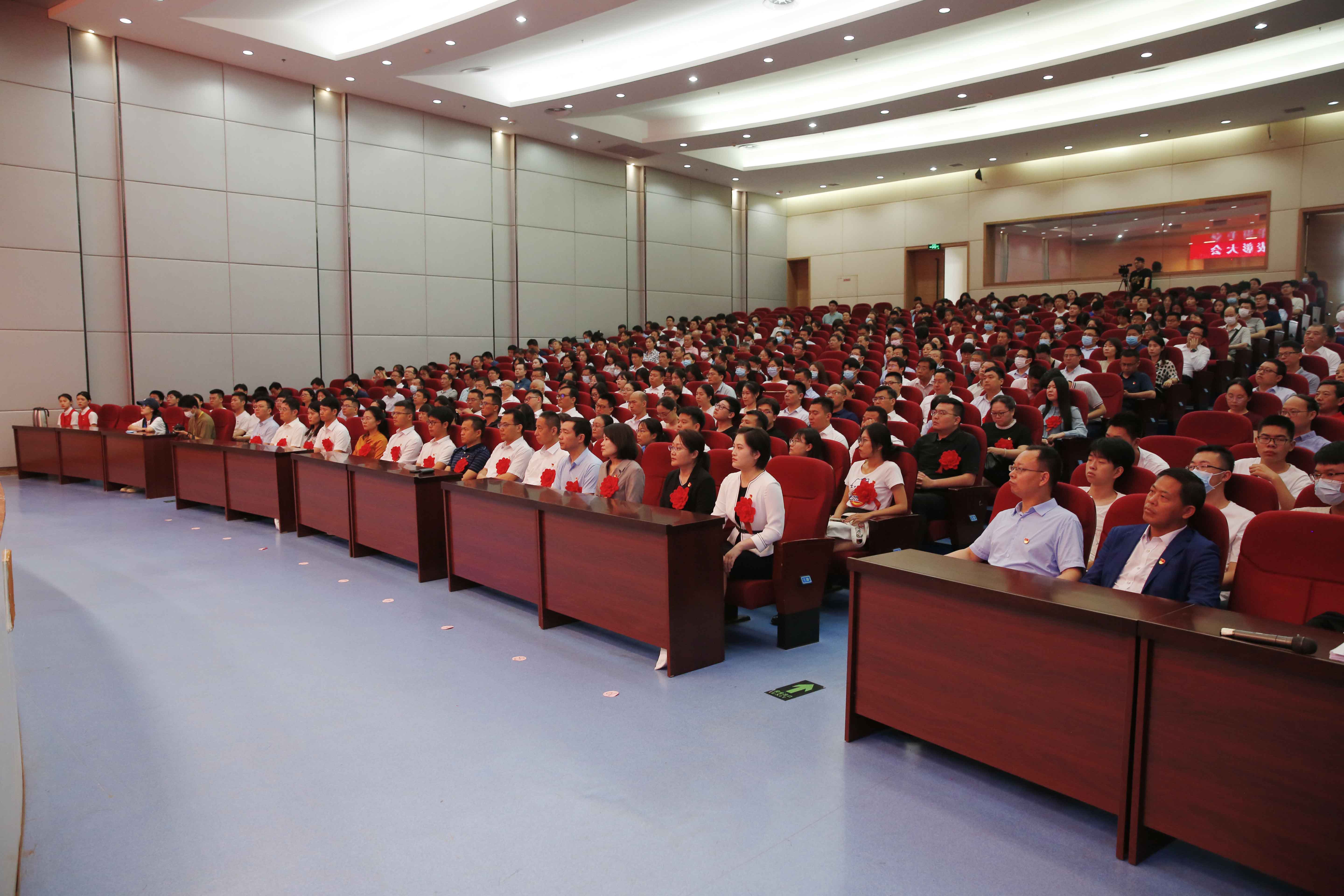 全校处级党员干部、机关科级党员干部、师生党员代表,及全体受表彰的先进集体和个人近500人参加大会。