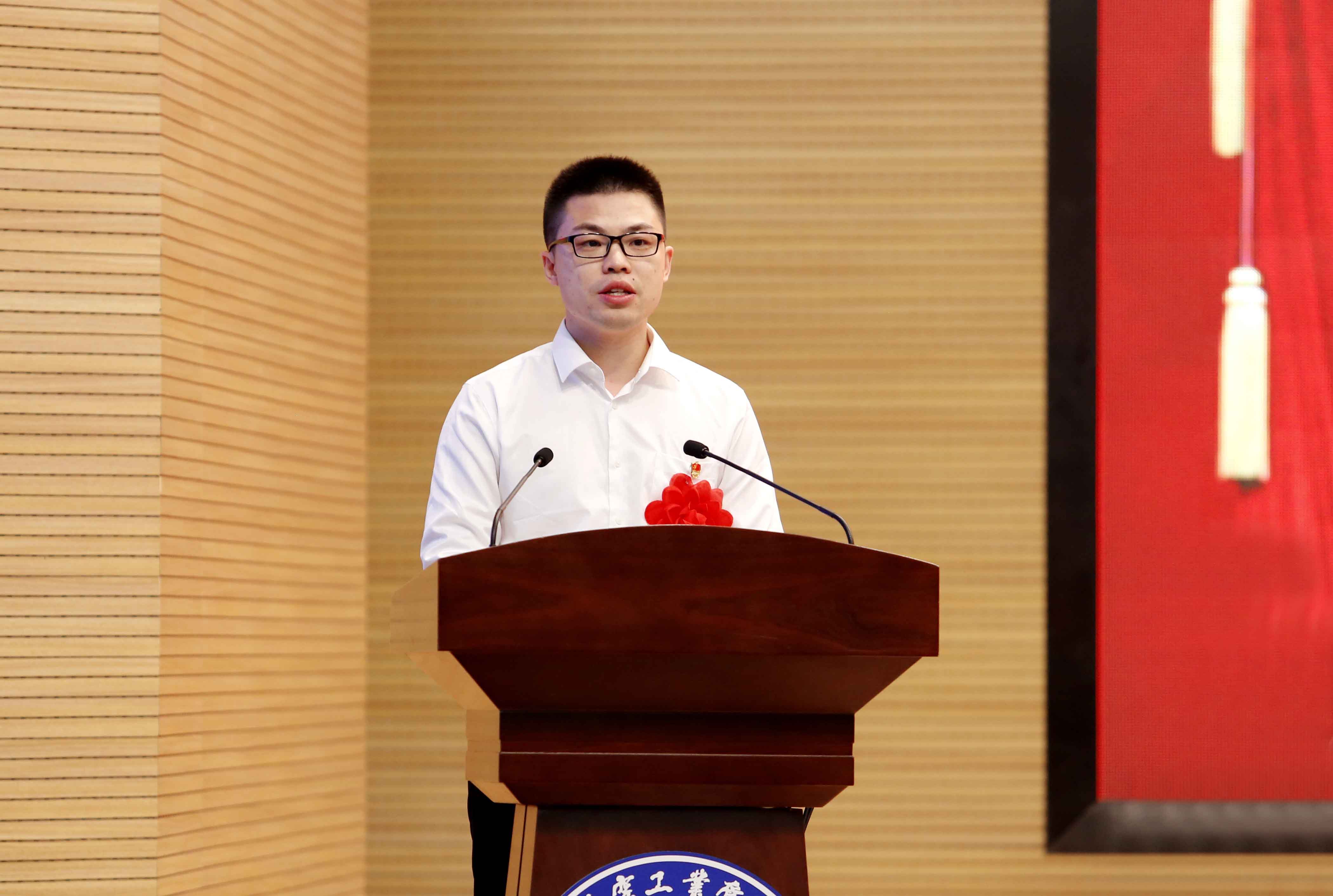 大会向受表彰的先进集体和优秀个人颁发奖牌和荣誉证书。优秀共产党员代表、信息管理学院教师朱兰兰,优秀党务工作者代表、经济学院学生第五党支部书记李奕,先进基层党组织代表、管理工程学院教工第一党支部书记宋志刚作交流发言。