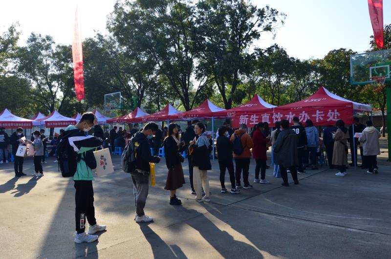 中心广场上,在红白相间的帐篷下一直忙碌的是全校各学院和迎新各部门的工作人员,他们为帮助新生尽快融入大学生活,纷纷使出创意无限、各具特色的迎新“招数”。