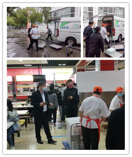 5月3日18时,饮食服务部一手筹措储备食材,一手组织全体餐饮保障人员返岗待命。采购部员工在相关领导带领下全方位、多渠道紧急联系供应商,24小时“在线”沟通食品原材料,做到手中有粮、心里不慌。在人手紧缺、工作量显著增加的情况下,仍按最严的标准、最全的措施安排食堂疫情防控和餐饮保障工作。依据用餐人数科学调整菜谱,力求营养健康、搭配丰富,有效保障24000余名在校师生的“吃饭”问题。在做好基本供餐工作的同时,还承担了封控学生公寓、核酸检测点的供餐及其他临时性的供餐任务,完成了20000余份配餐任务。餐厅实行错时错峰就餐,供餐时间延长至晚上22:00。饮食服务部、餐饮公司积极克服住宿不便、连轴转超负荷工作等困难,众志成城、齐心协力,确保供餐服务工作安全有序高效,努力打赢“舌尖上”的防疫战。