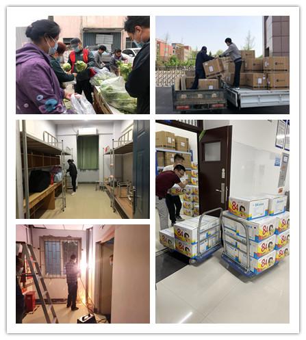 第一时间做好口罩、手套、消毒液、防护服等常用防疫物资储备和隔离场所建设,满足应急管理需要。筹措生活物资,采购发放洗漱用品等,为员工们做好保障工作。党员干部积极参与校外捐赠物资的搬运及配送工作,常常忙到深夜,但他们毫无怨言。