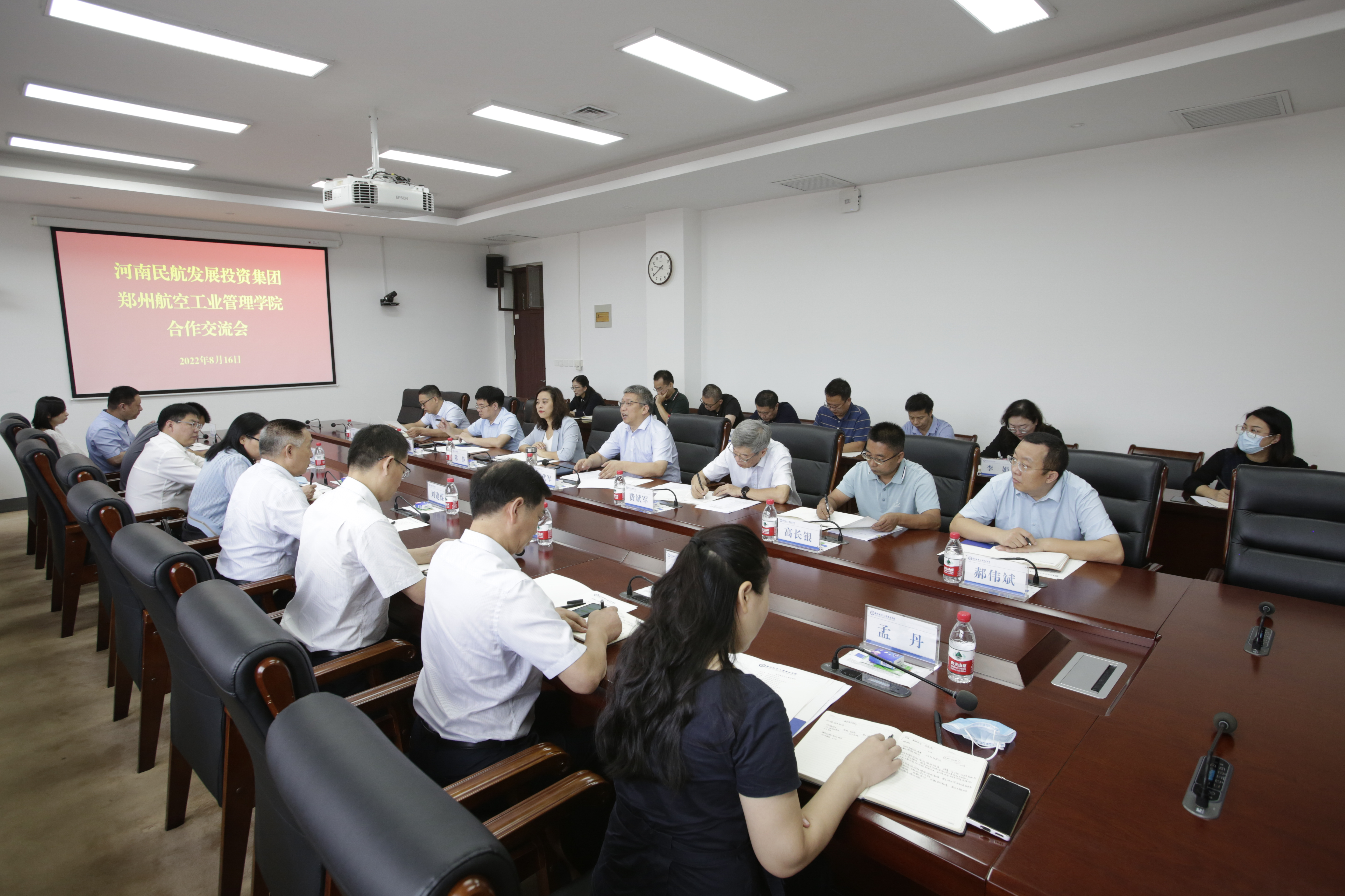 8月16日,河南民航发展投资集团党委副书记、总经理、副董事长刘建葆等一行15人来校,就人才培养、智库建设和科研合作等相关事宜进行洽谈交流。校长刘代军出席会议,副校长费斌军主持合作交流会,纪委书记、监察专员张文强陪同参观。