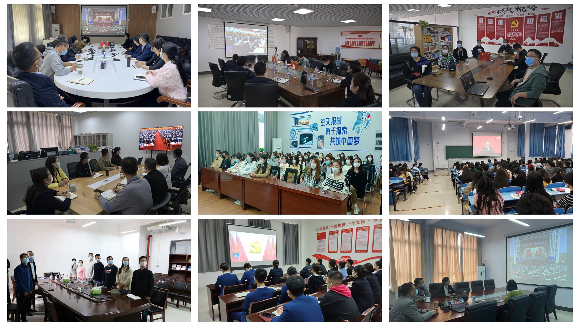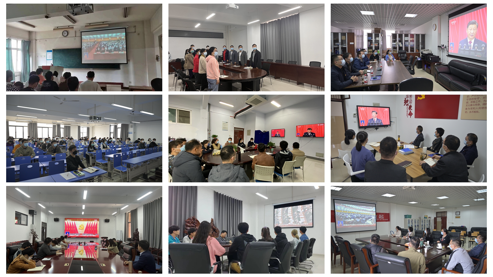 与此同时,学校各二级党组织设立分会场,组织全校师生员工、民主党派、无党派人士等通过电脑、移动客户端、电视等方式收听收看大会盛况。