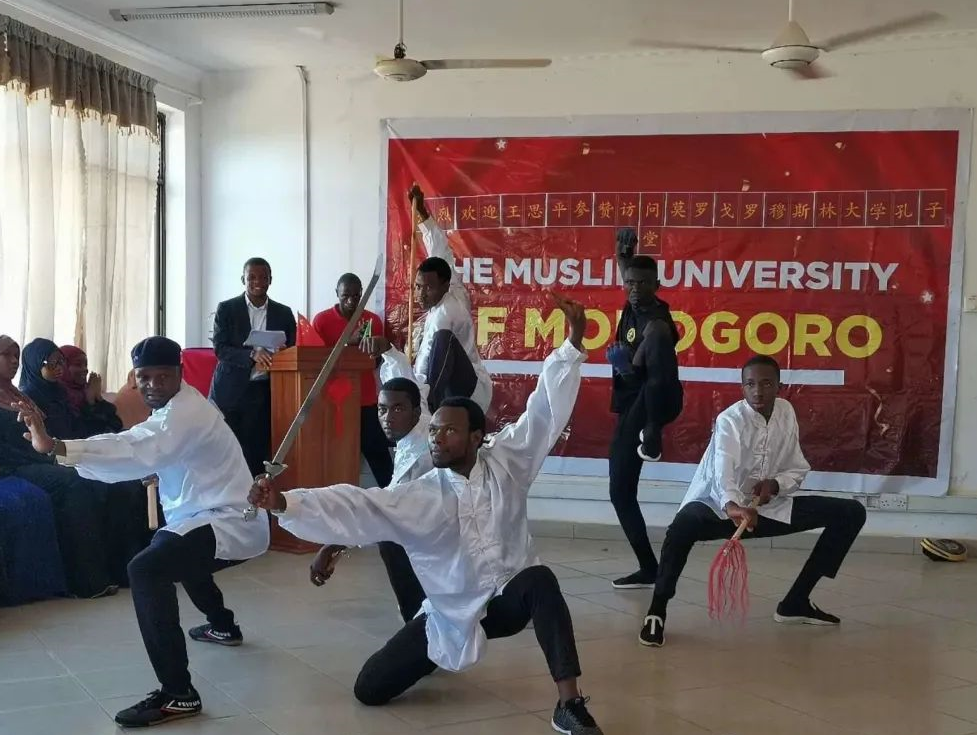 会见结束后,来自穆斯林大学的武术爱好者表演了中国传统武术。中华武术的博大精深给在场的每位坦桑学生带来了前所未有的视觉体验。