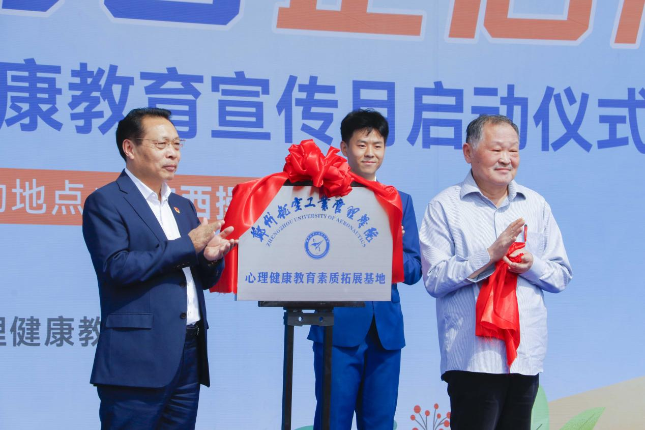 王继东和特邀嘉宾郑州大学博士生导师、教授赵山明为心理健康教育素质拓展基地揭牌。