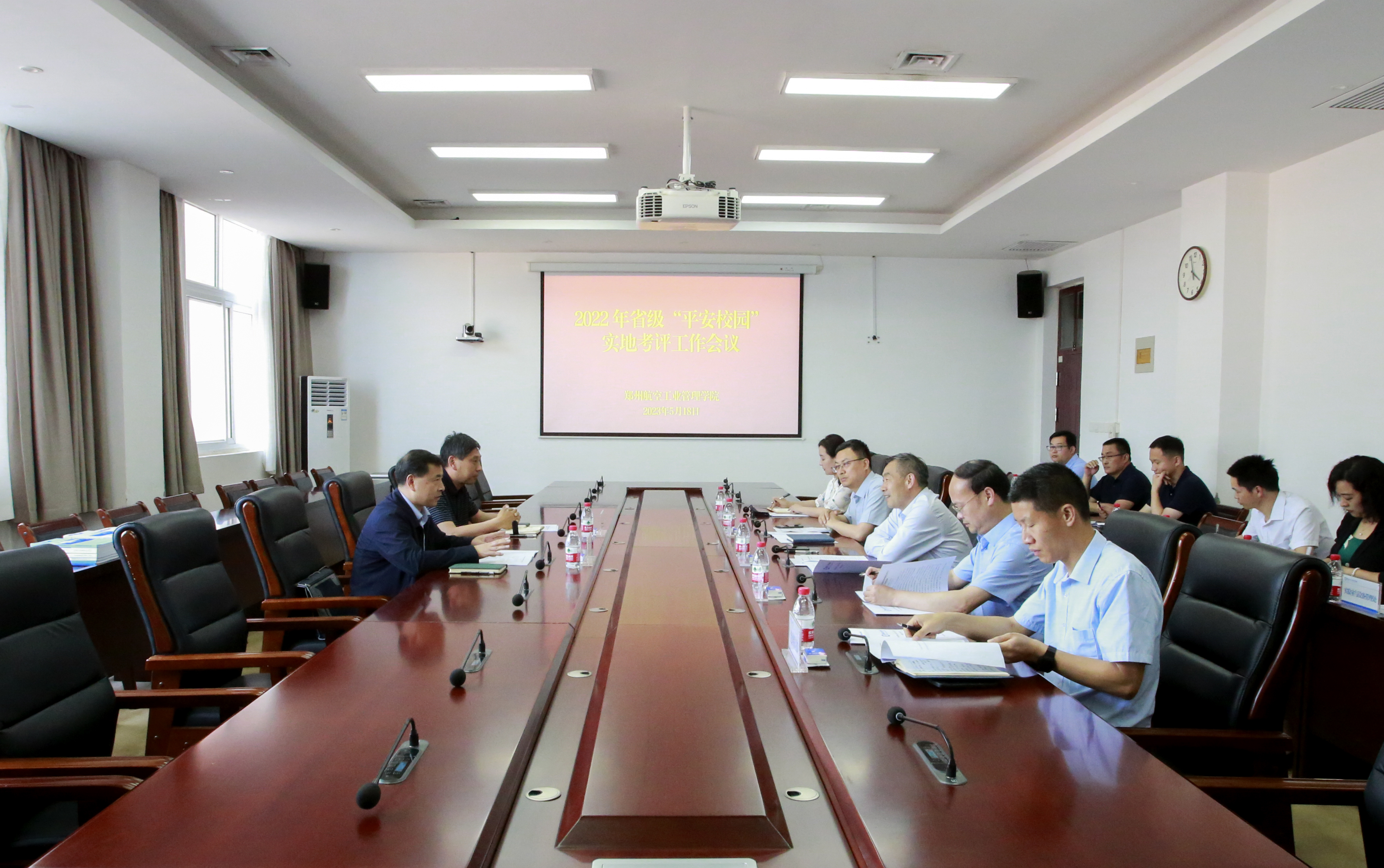 5月18日,以河南省教育厅安全处一级调研员杨伯堂为组长的省级“平安校园”考评组来校考评指导。校党委副书记余传杰出席汇报会。