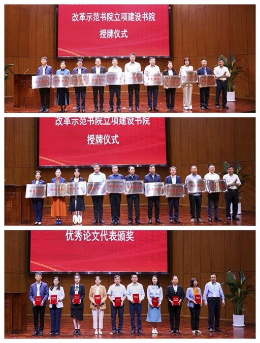 开幕式上,刁玉华向包括我校珙桐书院、嵩山书院等29个省级示范书院授牌。吴长运为河南省书院制育人模式改革优秀论文获奖代表颁奖。其中,我校蓝天书院院长申晓晶撰写的论文《书院制模式下提升高校劳动育人实效的路径研究》、辅导员符柯撰写的论文《高校书院制管理模式下学生思政育人的路径研究》荣获一等奖。