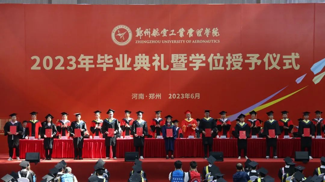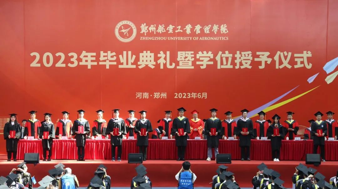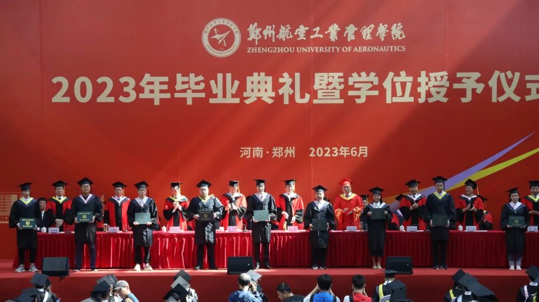 校党委副书记、工会主席杨培宣读《关于表彰2023年郑州航院优秀应届毕业生的决定》《关于表彰郑州航院2023届优秀硕士毕业生的决定》《关于表彰郑州航院高等学历继续教育2023届优秀毕业生的决定》,党委副书记余传杰宣读《关于聘任2023届校友工作联络员的通知》,副校长李捷宣读《关于表彰2023年郑州航院“学霸宿舍”的决定》,副校长刘兆瑜宣读《郑州航空工业管理学院学位评定委员会学位授予决议》。