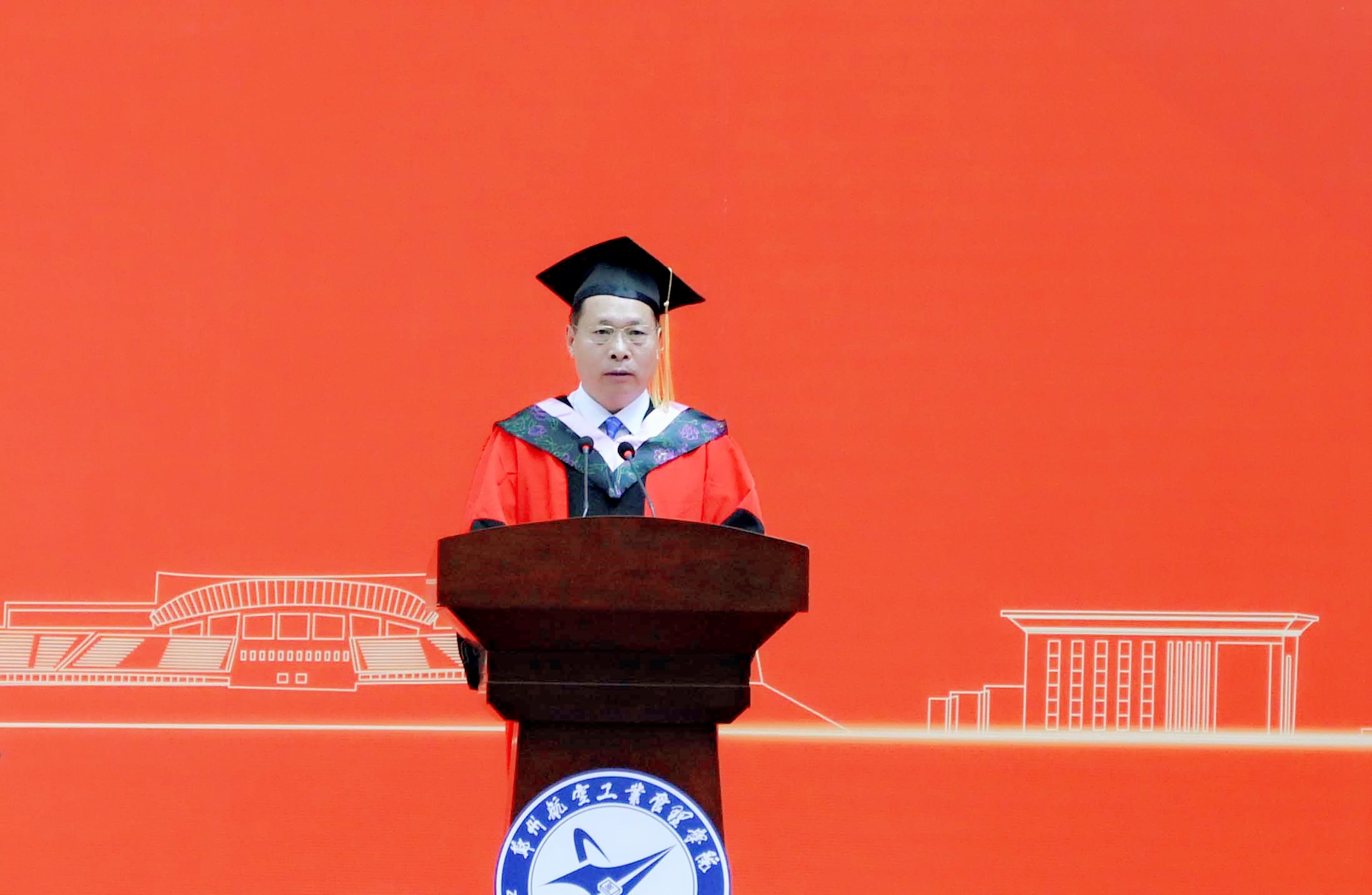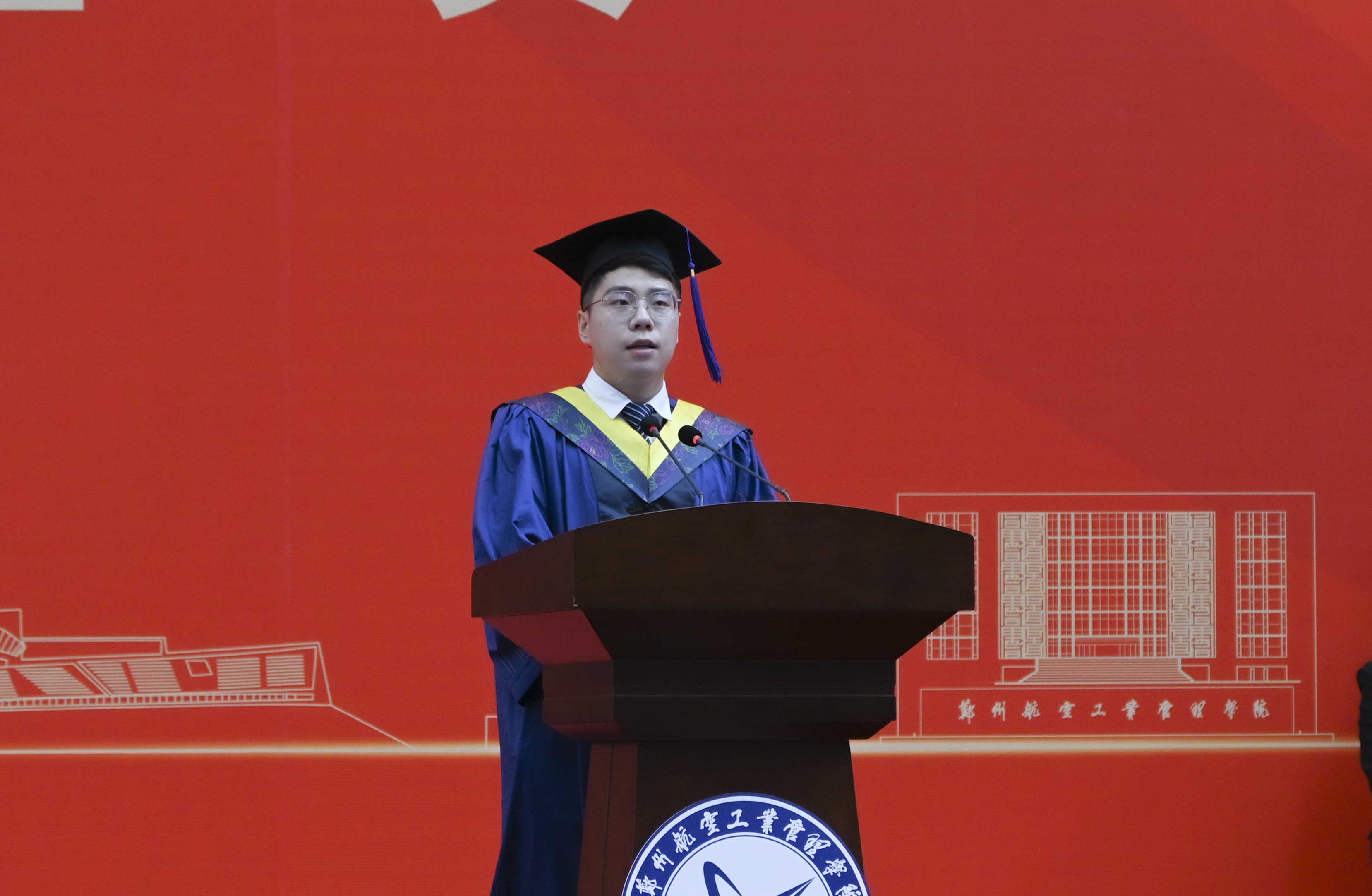 李建光在发言中,表达了对孩子学有所成的欣慰、对学校辛勤栽培的感谢,同时祝福广大郑航毕业生怀报国之志、揣满腹经纶,顺境中乘势而进、逆境中破浪前行,秉持郑航校训,努力实现人生梦想。