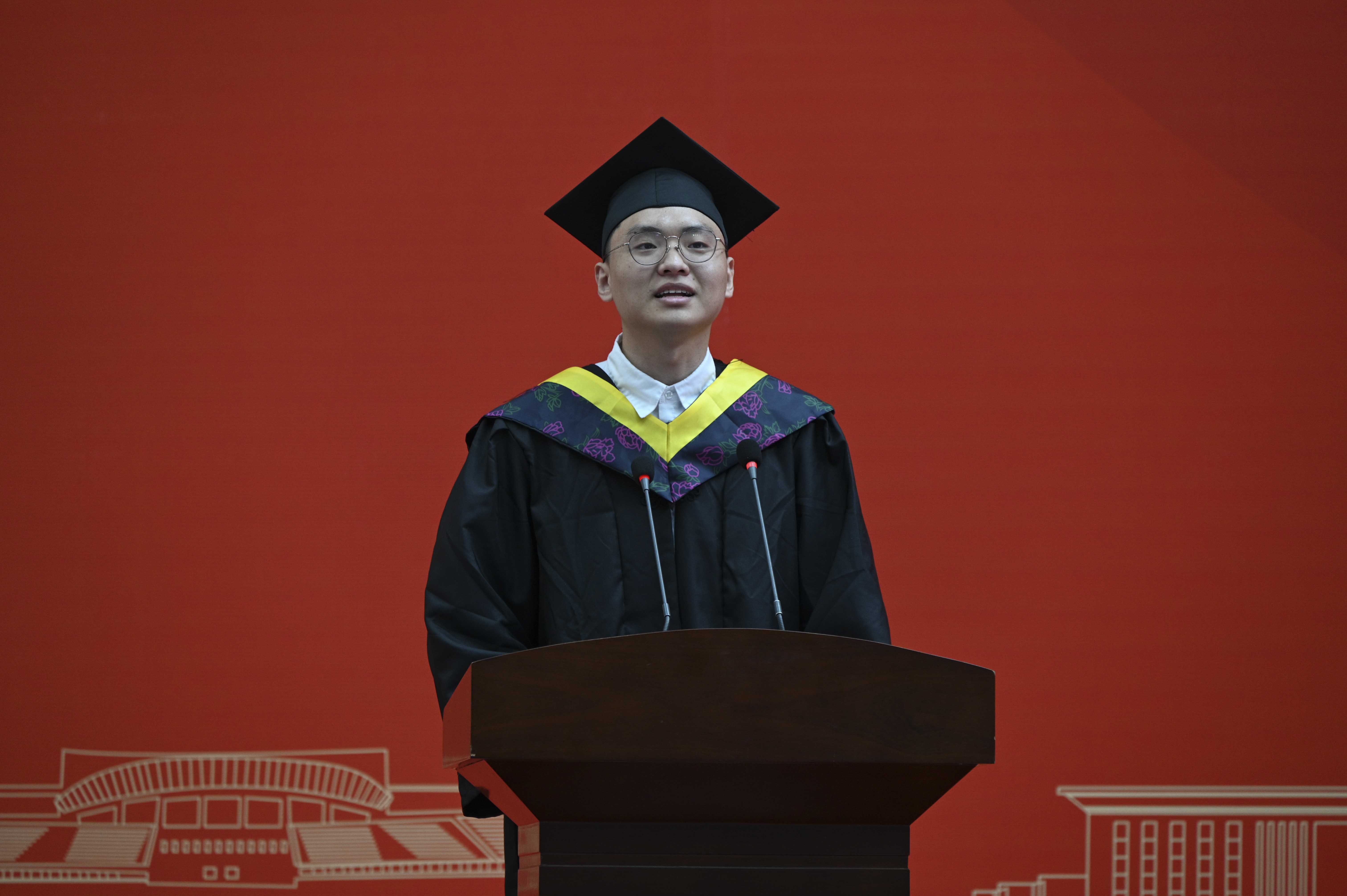 荣智峥回顾了研究生期间通过刻苦钻研终有所获的经历。荣智峥表示,今天我们将背起行囊,开赴新的征程,在未来的漫漫征途中,无论是继续学术深造,还是投身社会熔炉,愿我们持守初心,接续奋斗,铭记“严谨求实、开拓进取”的校训,翻越一座又一座“浪浪山”。
