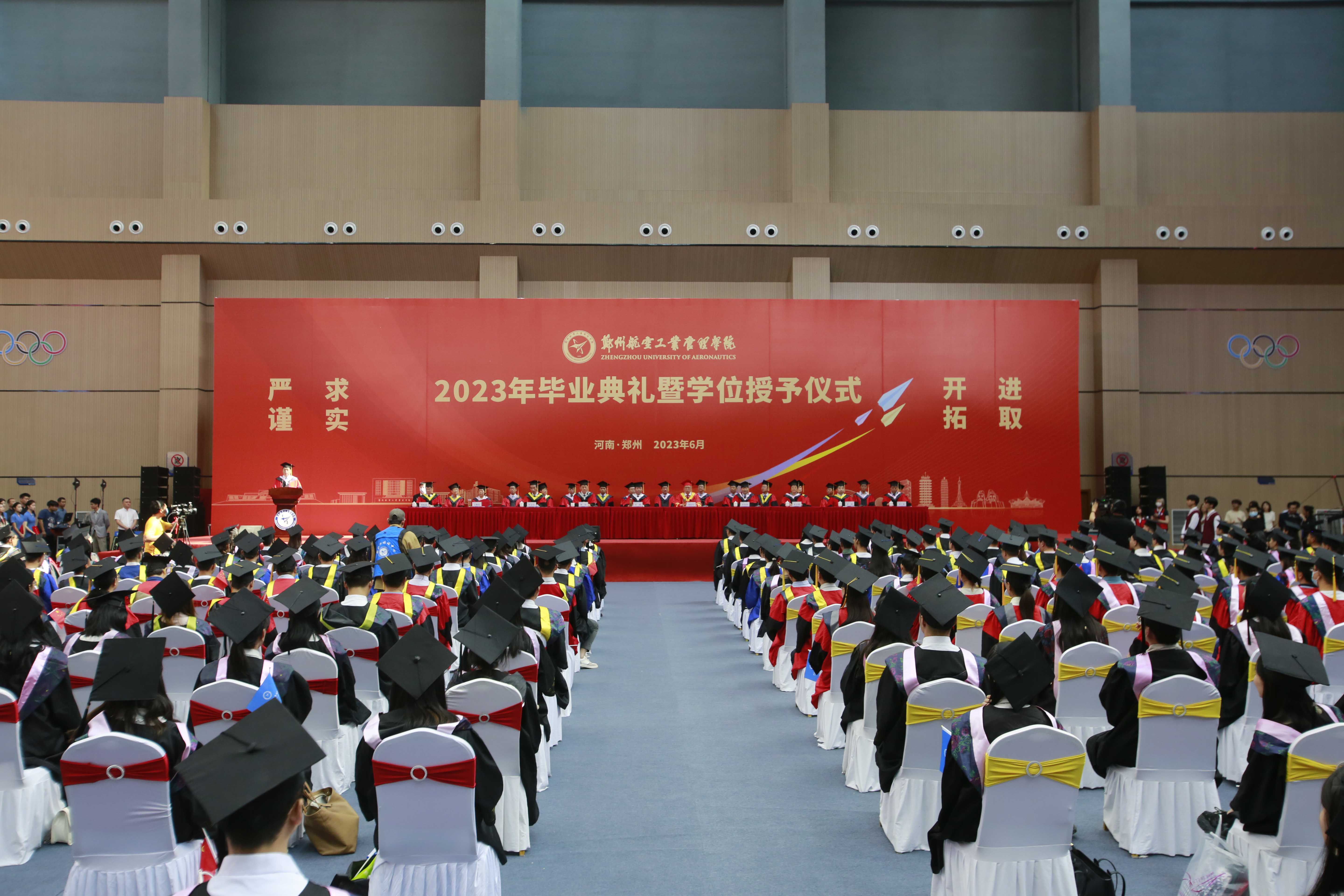 6月9日,我校在郑航体育馆隆重举行2023年毕业典礼暨学位授予仪式。全体在校校领导付强、刘代军、杨培、余传杰、申金山、张文强、李捷、刘兆瑜、李广锋出席典礼。典礼由副校长王继东主持。
