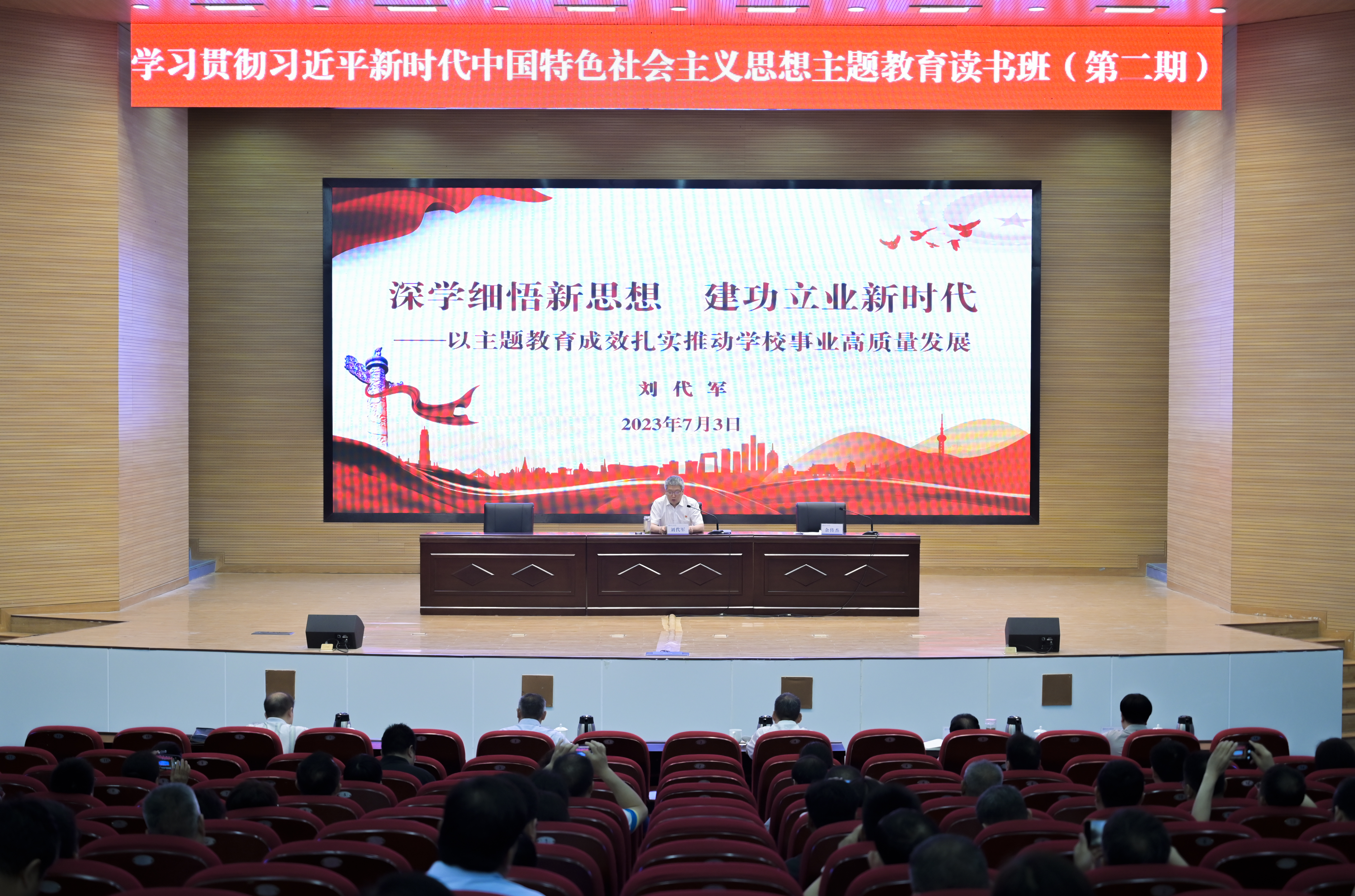 7月3日,我校学习贯彻习近平新时代中国特色社会主义思想主题教育第二期读书班开班。校长刘代军出席开班式并作专题党课辅导。全体在校校领导杨培、王继东、李捷、刘兆瑜参加。校党委副书记余传杰主持开班式。