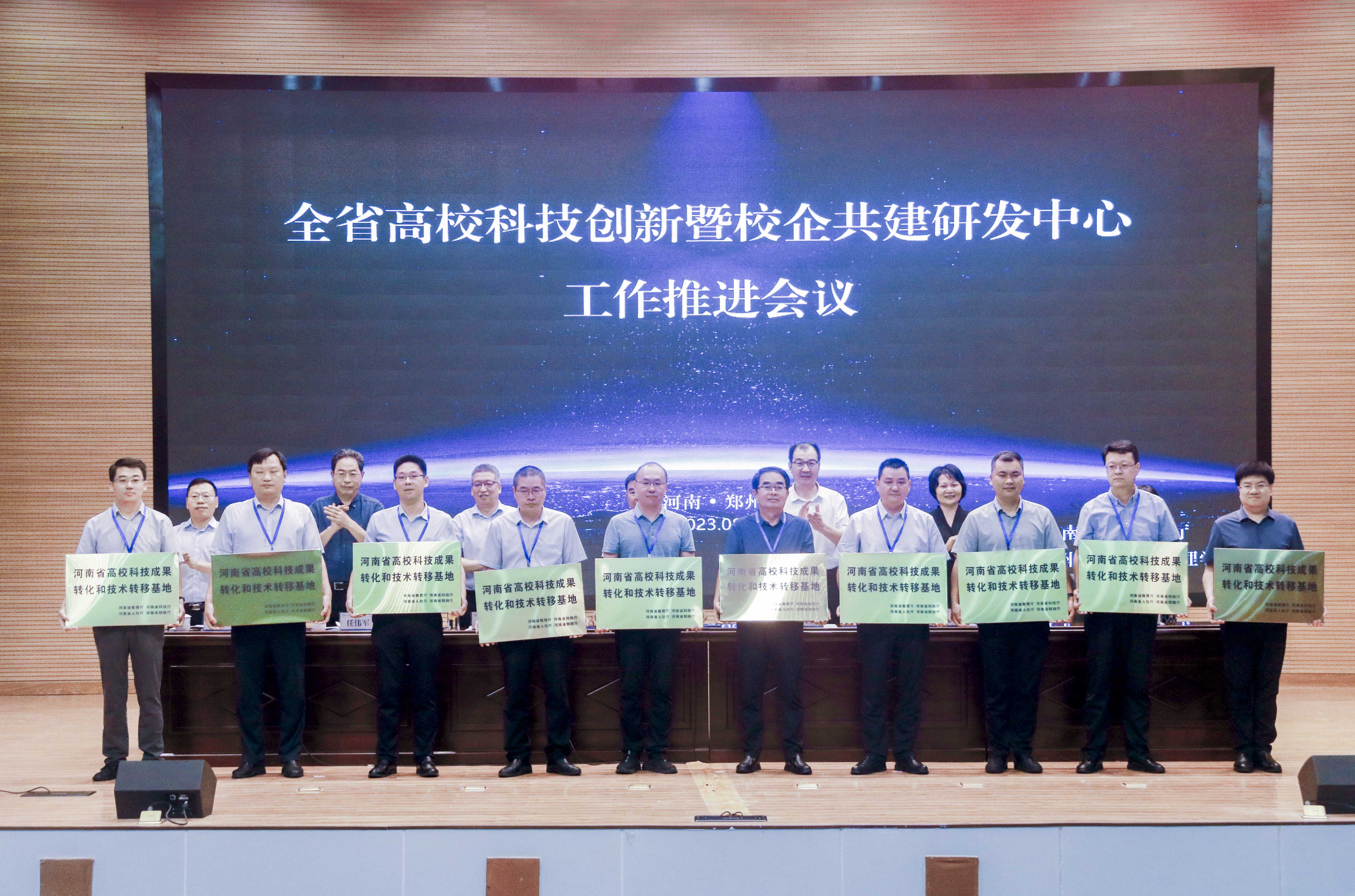 会议向省部共建协同创新中心、2023年度河南省协同创新中心和首批河南省高校科技成果转移转化基地授牌。