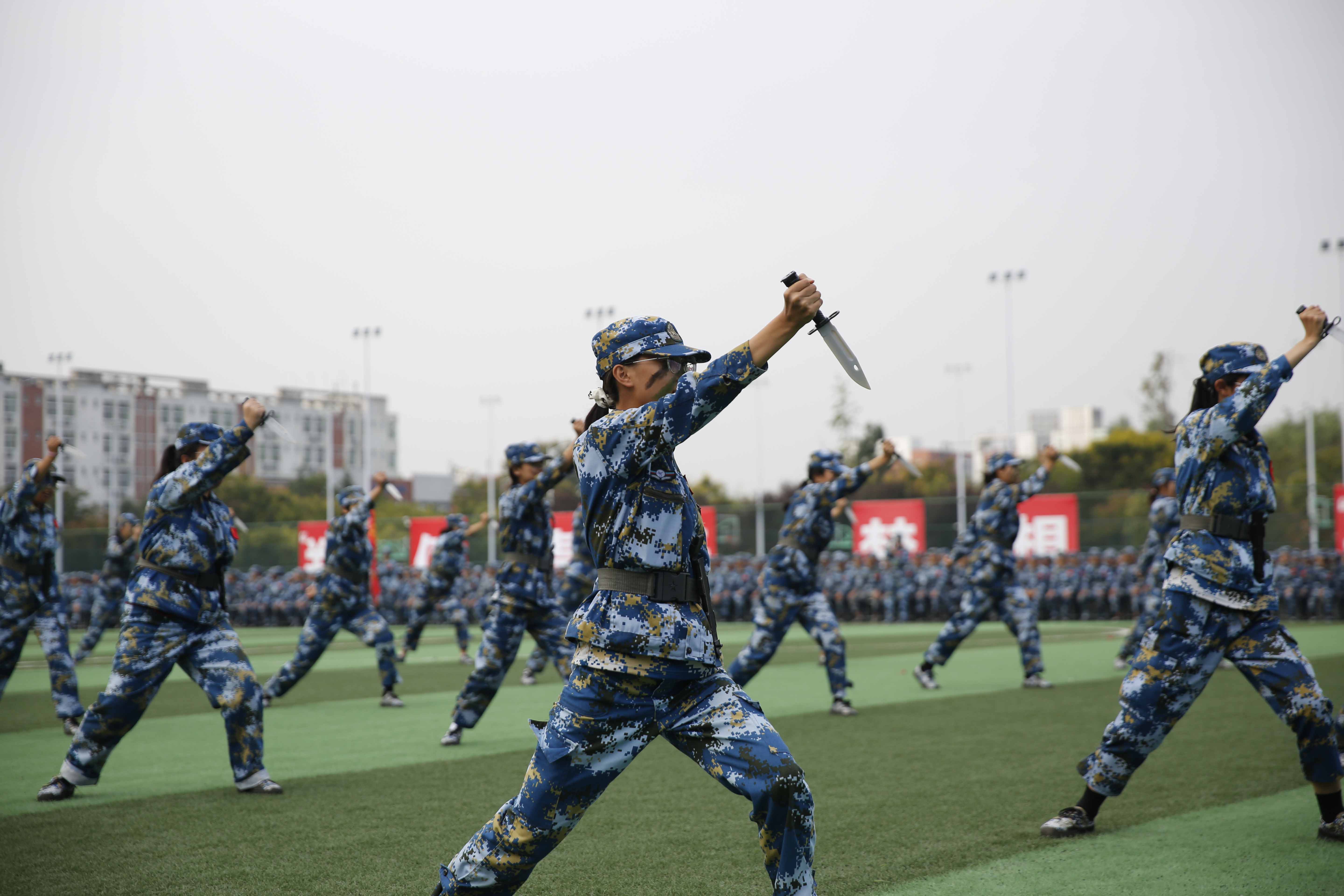 在成果汇报展演中,刺杀操、应急棍术、盾牌术、匕首操、军体拳、战场演练等科目表演依次登场,卧倒、滚翻、搜索前进等单兵技能彰显着青年学子的顽强拼搏,掩护配合、攻防兼备的团队战术更显集体协作的力量。每位训练有素的青年学子,仿佛化身为战场上的勇士,铿锵有力的呼喝和干净利落的拳脚打出了喷薄欲出的气势,令人热血沸腾。
