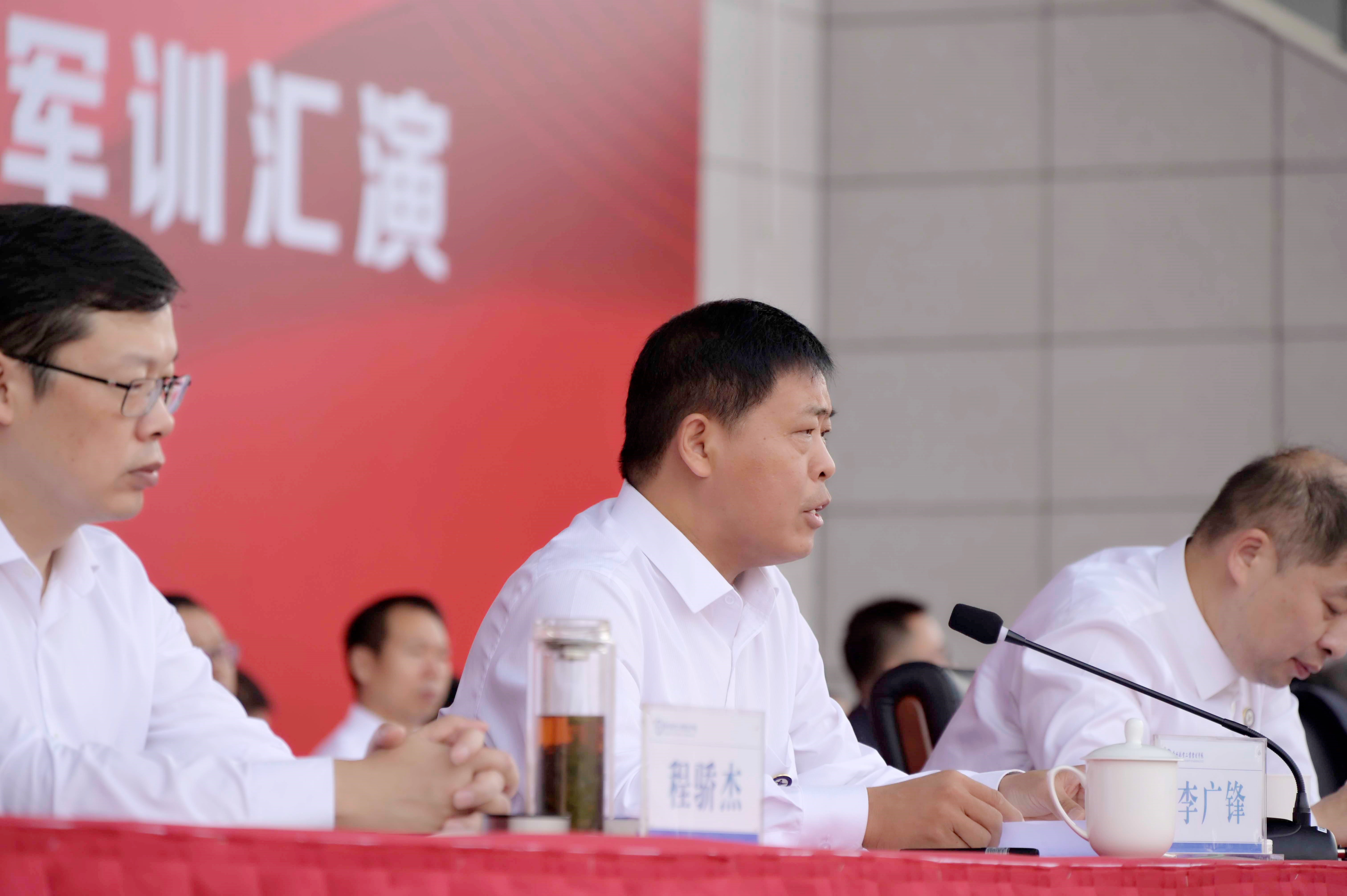 军训团团长王洪梁主持军训汇演,汇演分为分列式表演和成果汇报展演两部分。