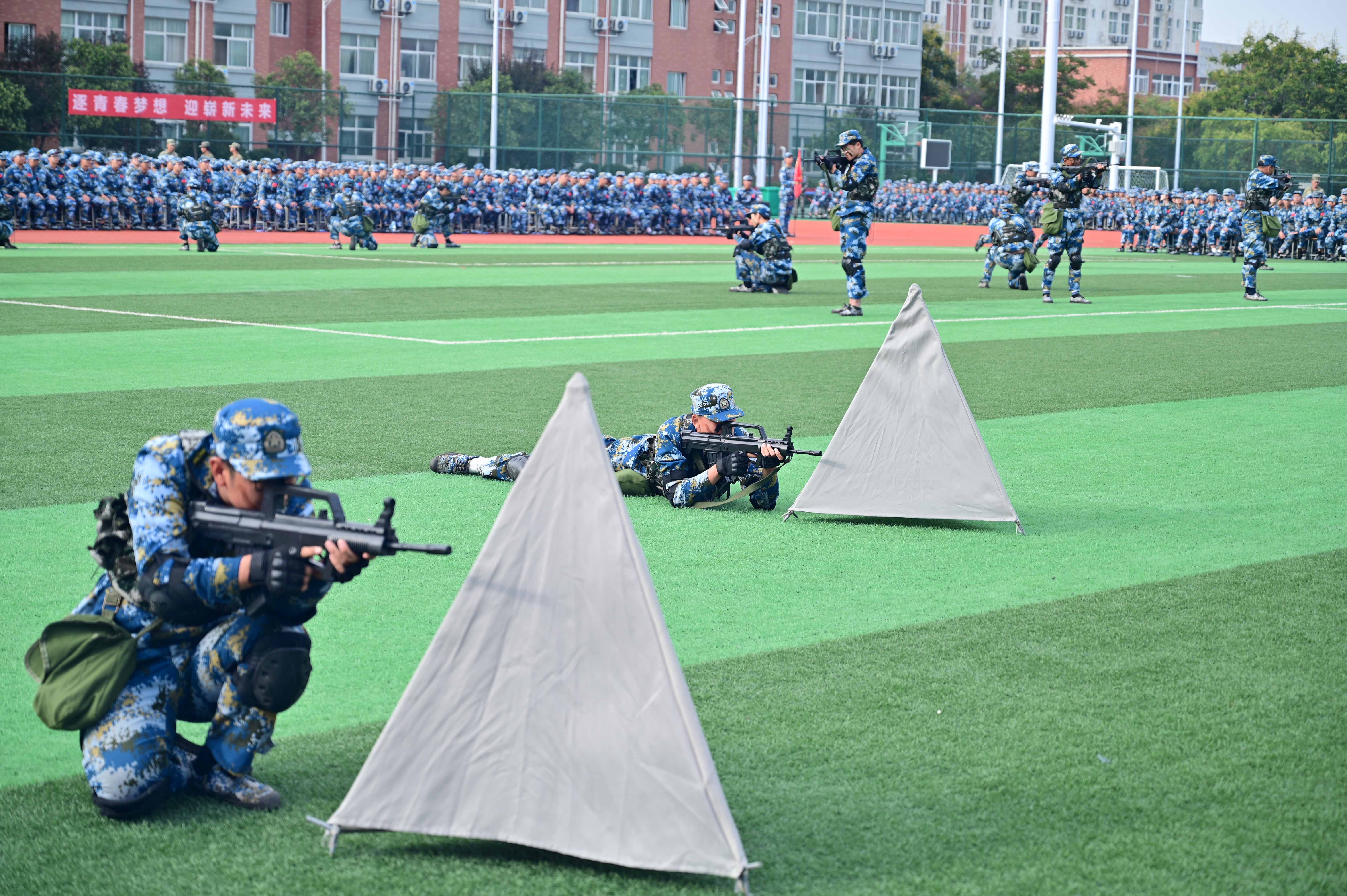本次开学典礼暨军训汇演采用线上线下相结合的方式举行,官方微信视频号同步直播。5340名2023级本科和硕士新生在龙子湖校区东体育场参加开学典礼暨军训汇演。
