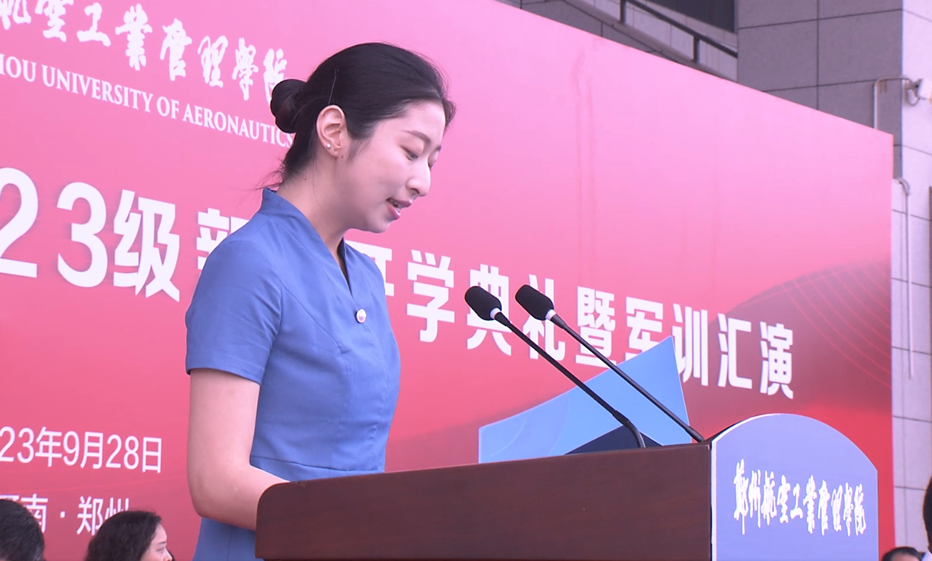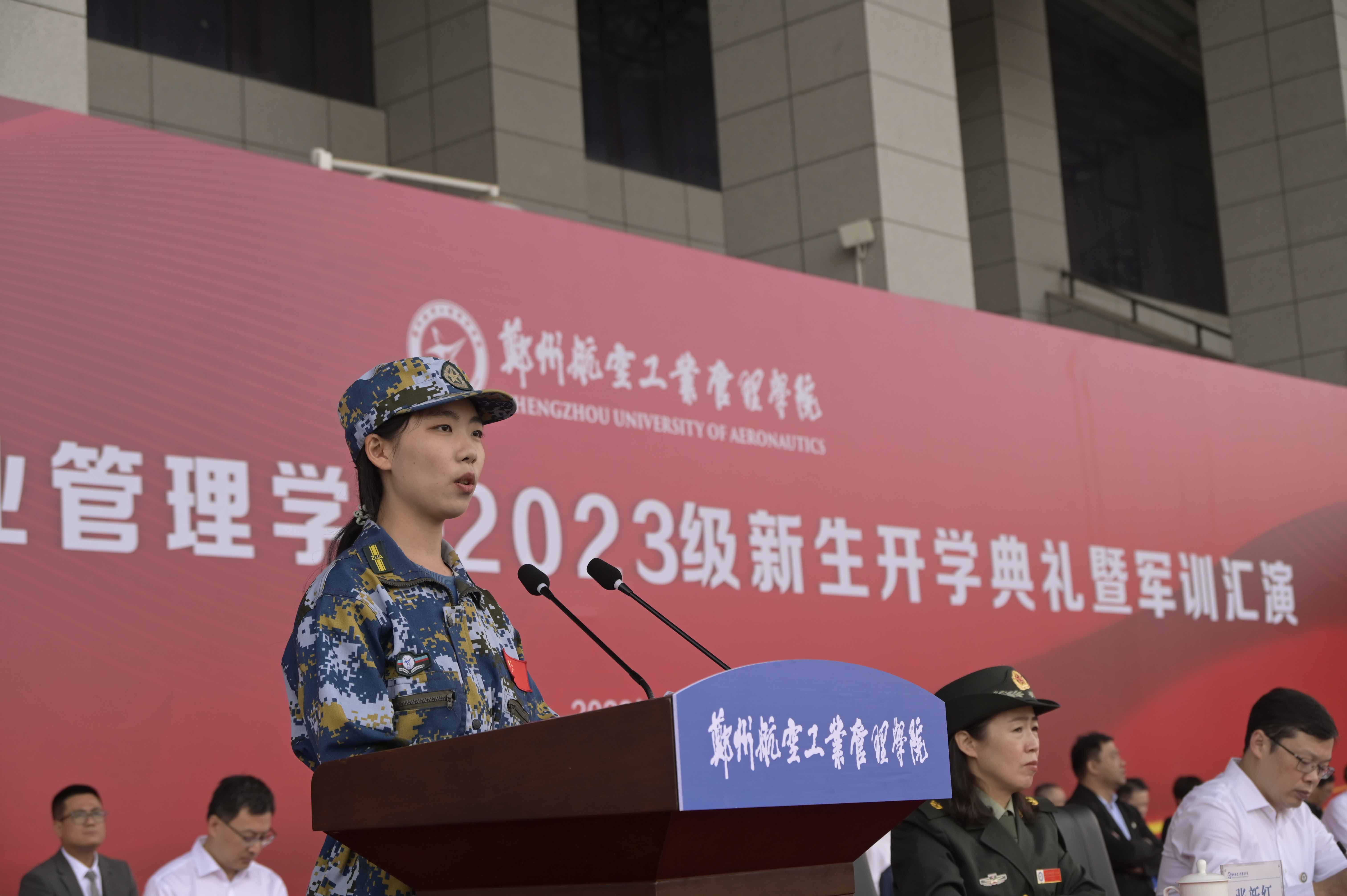 “青春虚度无所成,白首衔悲亦何及”,在校生代表任璐结合自身学习经历,认真思考“我来大学是为了什么?我的最终目标又是什么?”她寄语2023级新生珍惜时光、勇担使命,在强国之路上奋力奔跑,在复兴伟业中挺立潮头,跑出新一代郑航青年的好成绩。