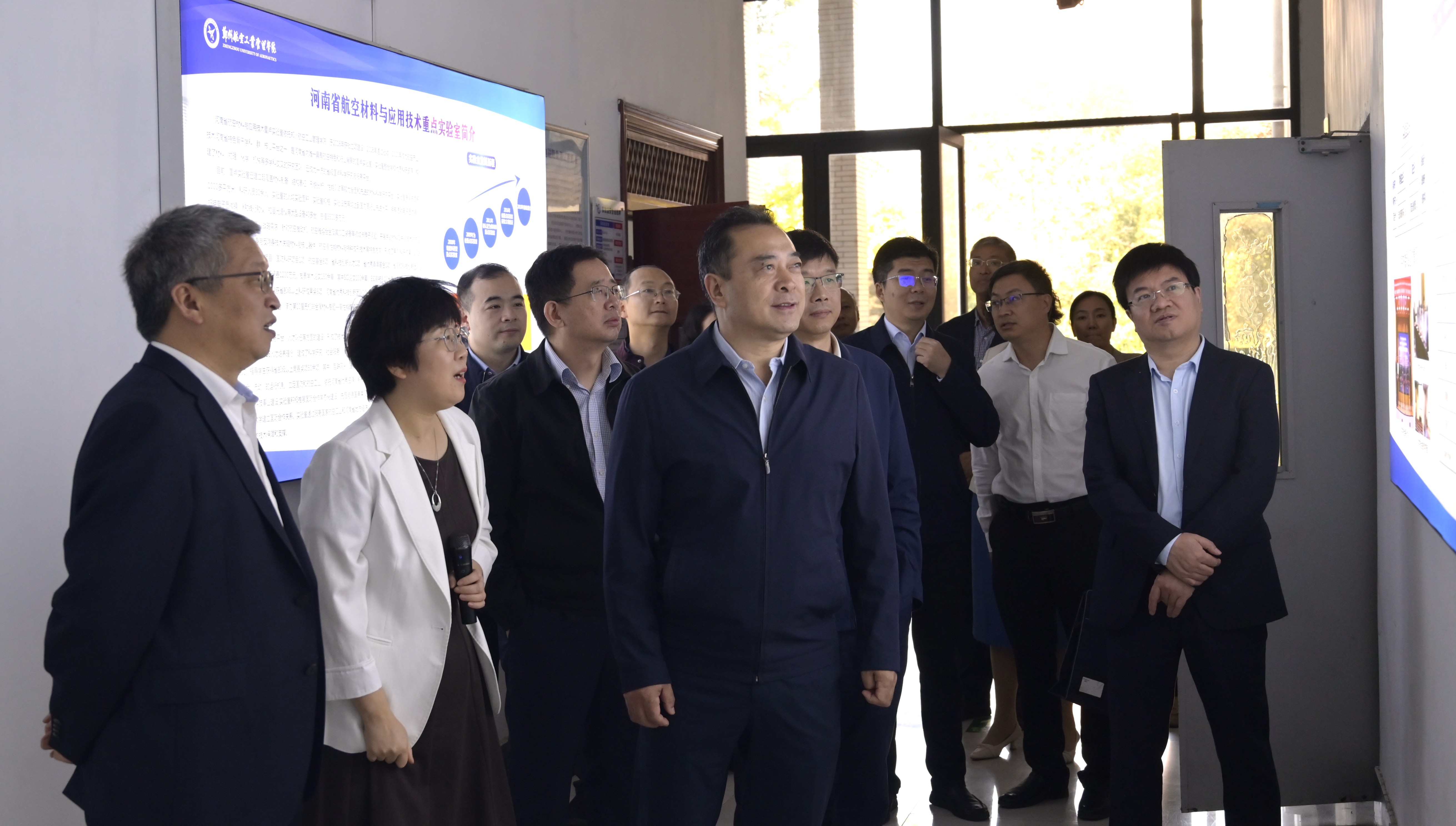 张锐、宋克兴一行深入调研河南省通用航空技术重点实验室无人机研究院的科学研究与社会服务情况,认真听取我校在无人系统领域产品研发、产教融合等方面汇报,详细了解河南省航空材料与应用技术重点实验室在材料学科领域的科学研究和人才培养方面取得的新成果,以及航空发动机学院的科学研究平台建设和项目开展情况。