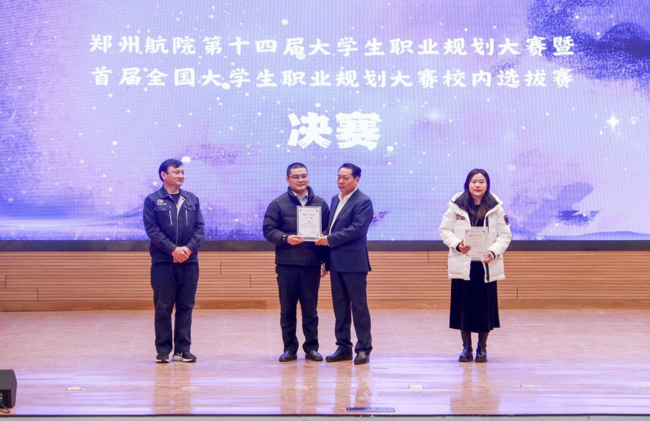 赛前,王继东为校外企业评委专家颁授郑州航院大学生职业发展校外导师聘书。
