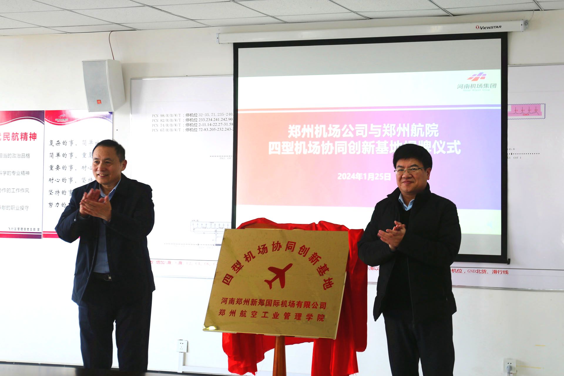 1月25日,我校和郑州机场公司共建的“四型机场协同创新基地”揭牌仪式在新郑机场举行。副校长刘兆瑜,河南省机场集团副总经理、郑州机场公司总经理王兵出席仪式并共同为基地揭牌。郑州机场公司执行总经理张天旺、副总经理范学广参加仪式。