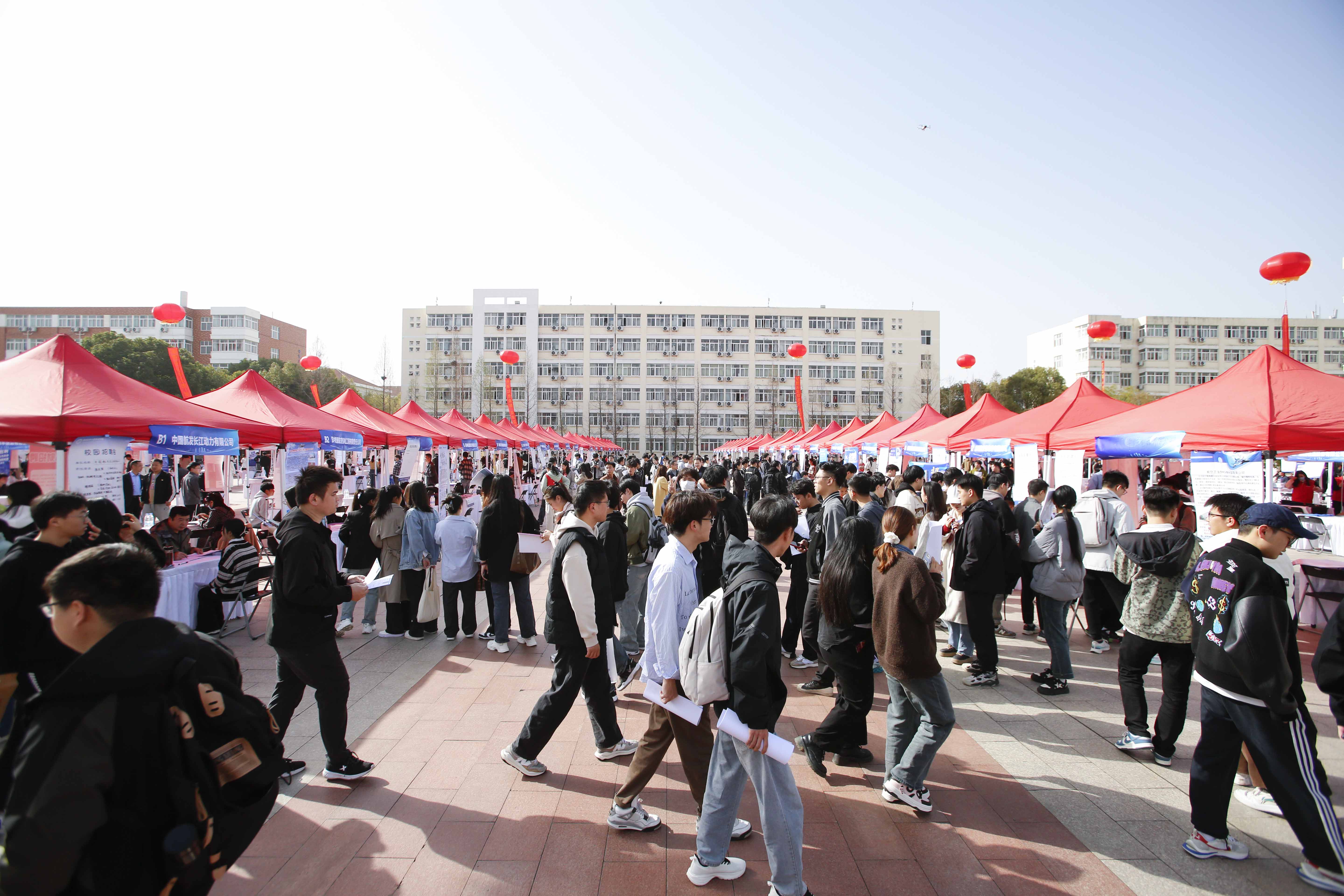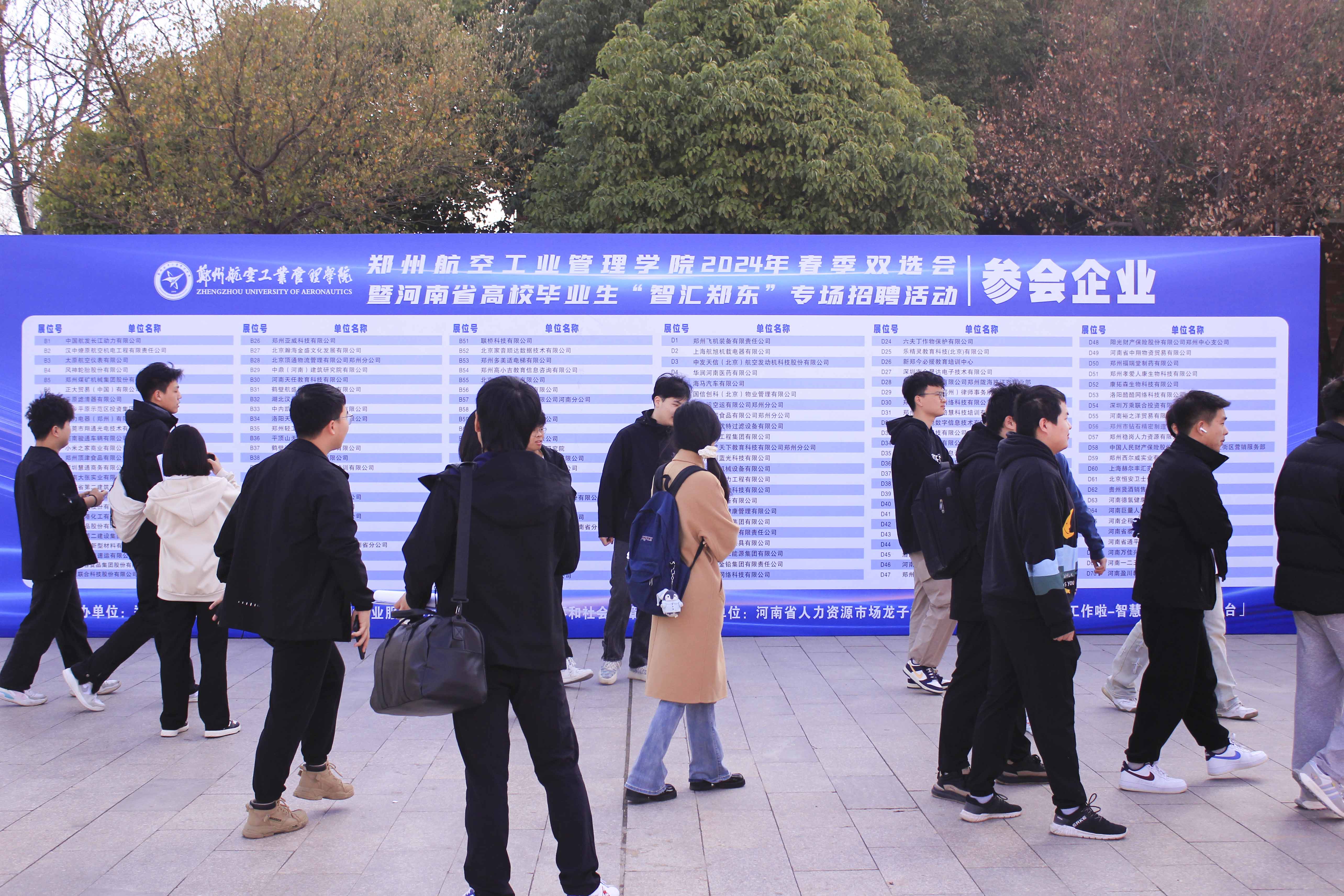 本次双选会共有包括郑州飞机装备有限责任公司、贵州新安航空机械有限责任公司、中国航发长江动力有限公司、郑州宇通集团有限公司、河南中豫建设投资集团股份有限公司在内的省内外近500家用人单位报名,学校选择了320家优质用人单位进校招聘,涵盖航空航天、机械、材料、电子、信息等众多领域。4000余名学生参加了双选会。