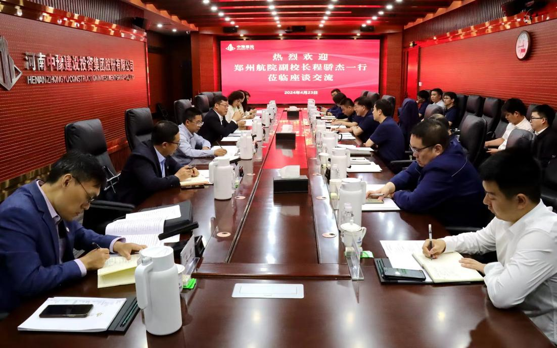 4月23日,副校长程骄杰带队到河南中豫建设投资集团股份有限公司(以下简称“中豫建投集团”)调研交流。中豫建投集团党委副书记、总经理李勤山,党委委员、副总经理于燕杰,河南省建设集团党委副书记、副董事长、总经理刘博文出席交流座谈会。