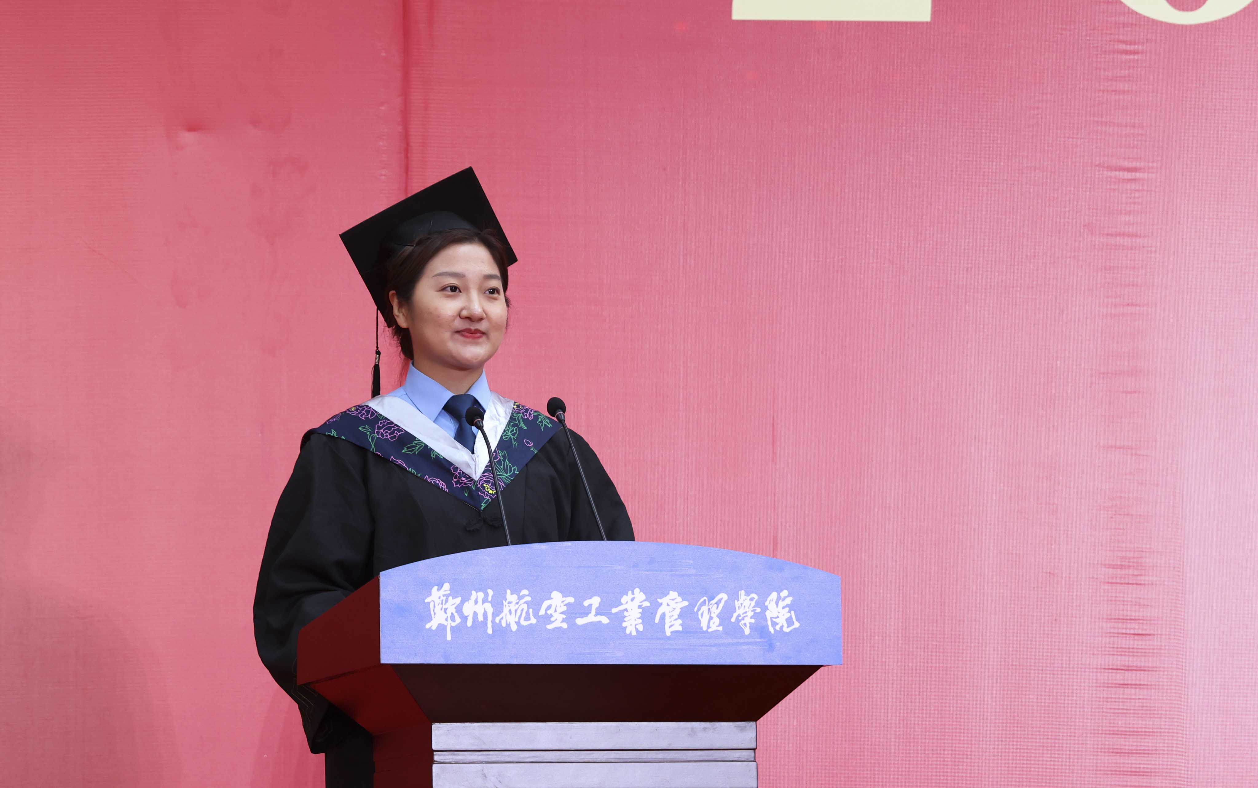 张小娇分享了自己大学参军及学习的心路历程,表达对师友的深切不舍和对母校的衷心感谢。话语之间,彰显勇敢自信的态度和奋发向上的青年朝气。陆文龙回望求学时光,讲述近年来学校的发展和自身成长的蜕变,号召同学们怀揣热爱、踔厉奋发,利用专业所长,发扬“空天报国 砺新图强”的郑航精神,在服务区域经济社会发展中贡献郑航力量。