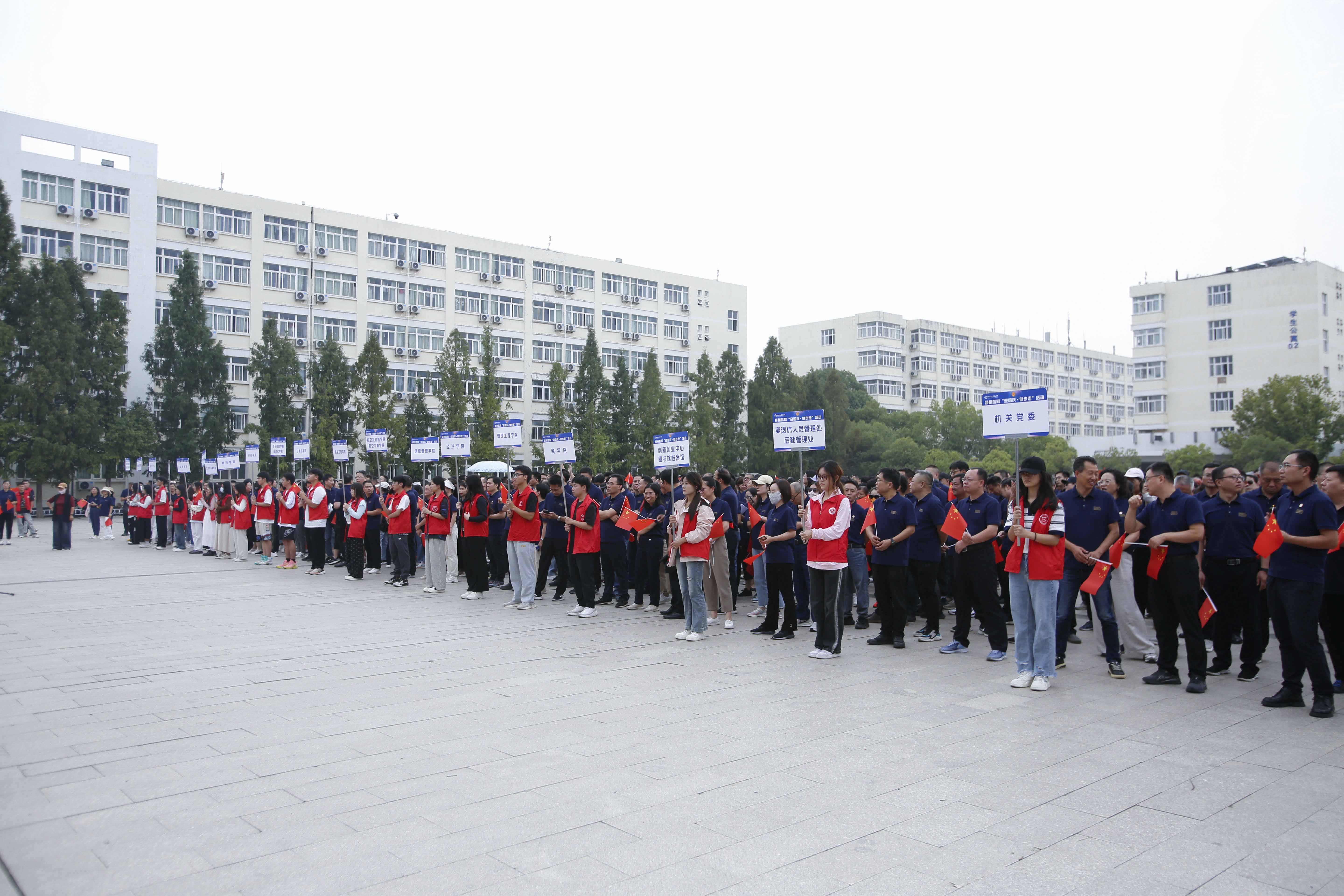 活动开始前,全体教职工身着统一服装齐聚在学校中心广场,陆续在喷绘墙上签名留言,以昂扬饱满的精神状态迎接活动的到来,广场上洋溢着欢乐的氛围。