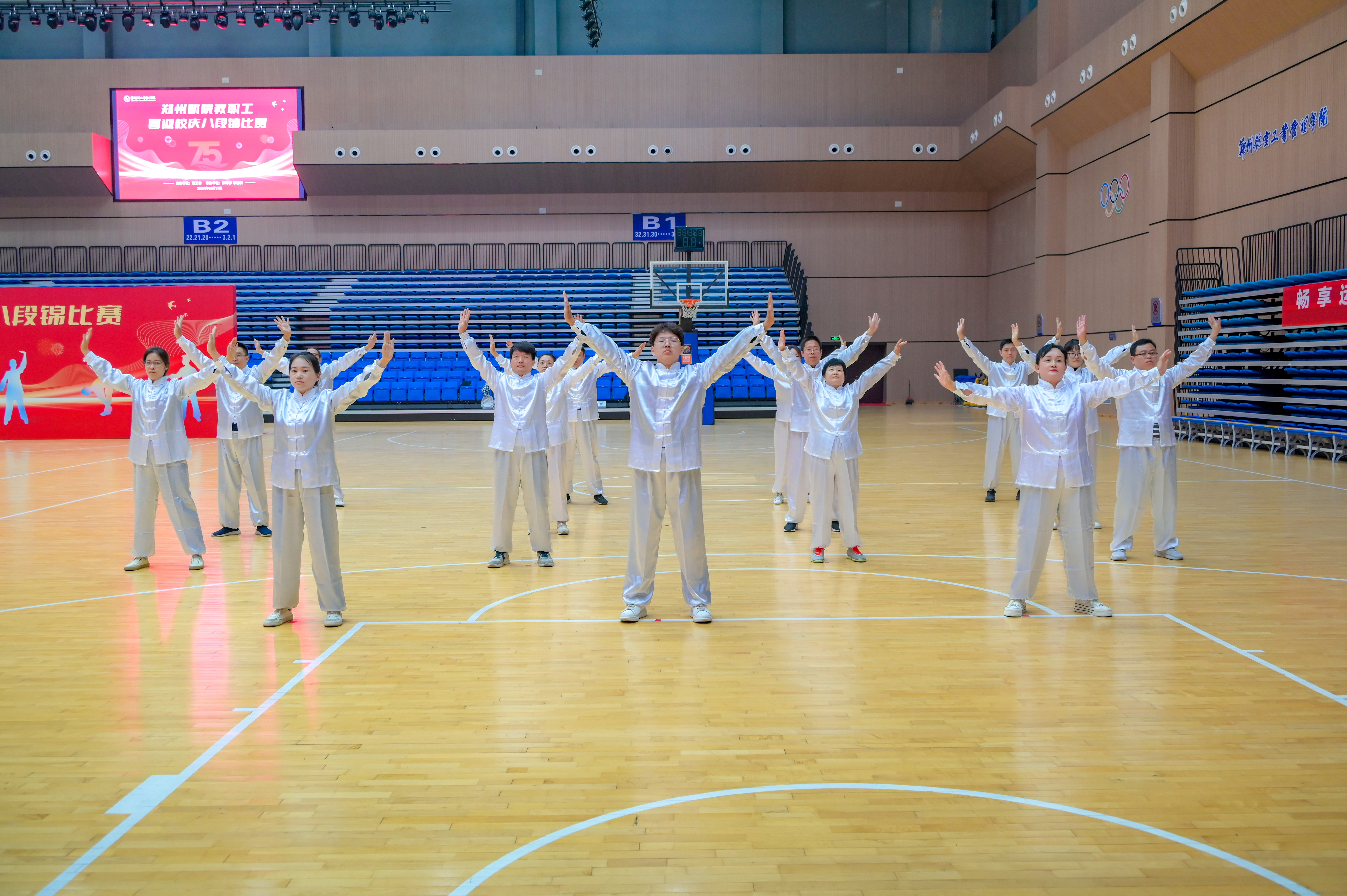 比赛现场气氛热烈,各参赛队伍身着统一服装,以饱满的热情和昂扬的斗志迎接比赛。他们动作整齐划一、舒展大方、刚柔相济,每一个动作都蕴含着力量与美感,一呼一吸间传递着健康与活力,将八段锦的神韵展现得淋漓尽致。