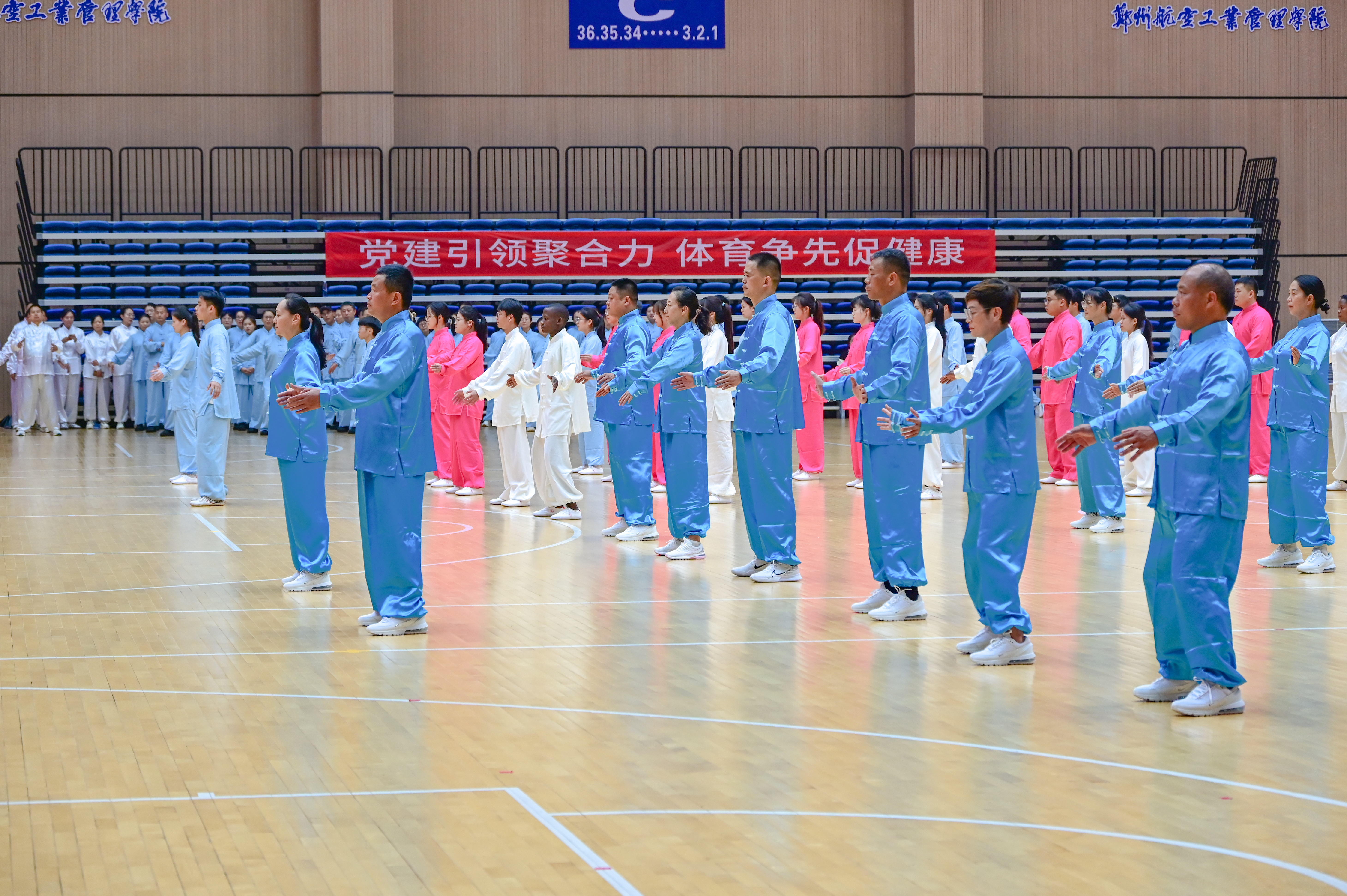 刘代军作总结讲话,对教职工提出三点希望。一是强健体魄、涵养身心,以更好的精神面貌投入工作学习中。全校师生要以开展此次活动为契机,深切感受八段锦的底蕴和内涵,认真体悟中华优秀传统文化的魅力,将八段锦等优秀传统健身活动融入日常生活中,练就健康体魄,涵养健康身心,以更加饱满的精神面貌投入到工作和学习中;各级工会要以建设和谐校园,促进教职工身心健康为目标,以加强交流、舒缓压力、促进了解、增加友谊为出发点,创新载体和形式,深入开展丰富多彩的教职工文体活动。二是团结向上、蓄势赋能,以八段锦的哲学智慧涵养优良作风。学校发展需要每一位郑航人团结一心,要心往一处想、劲往一处使,明确清晰而坚定的目标,凝聚起共识与合力,以八段锦一招一式中所蕴藏的和谐、统一的哲学智慧滋养团结奋斗的工作作风。三是挺膺担当、奋楫笃行,以真抓实干的实际行动助力学校高质量发展。学校正处于建设高水平航空航天大学的关键期,面对学校改革发展中的瓶颈制约问题,面对建设高水平航空航天大学的目标任务,需要全校师生弘扬“空天报国 砺新图强”的郑航精神,着力固根基、扬优势、补短板、强弱项,将建设高水平航空航天大学的各项具体任务落实落细,以更大决心、更强力度、更实举措奋力谱写我校高质量发展的新篇章,为早日建成高水平航空航天大学奋楫扬帆、逐梦笃行。在学校75周年华诞即将到来之际,刘代军送上美好祝福,祝愿学校繁花似锦、再创辉煌,祝愿全体郑航人前程似锦、幸福安康。