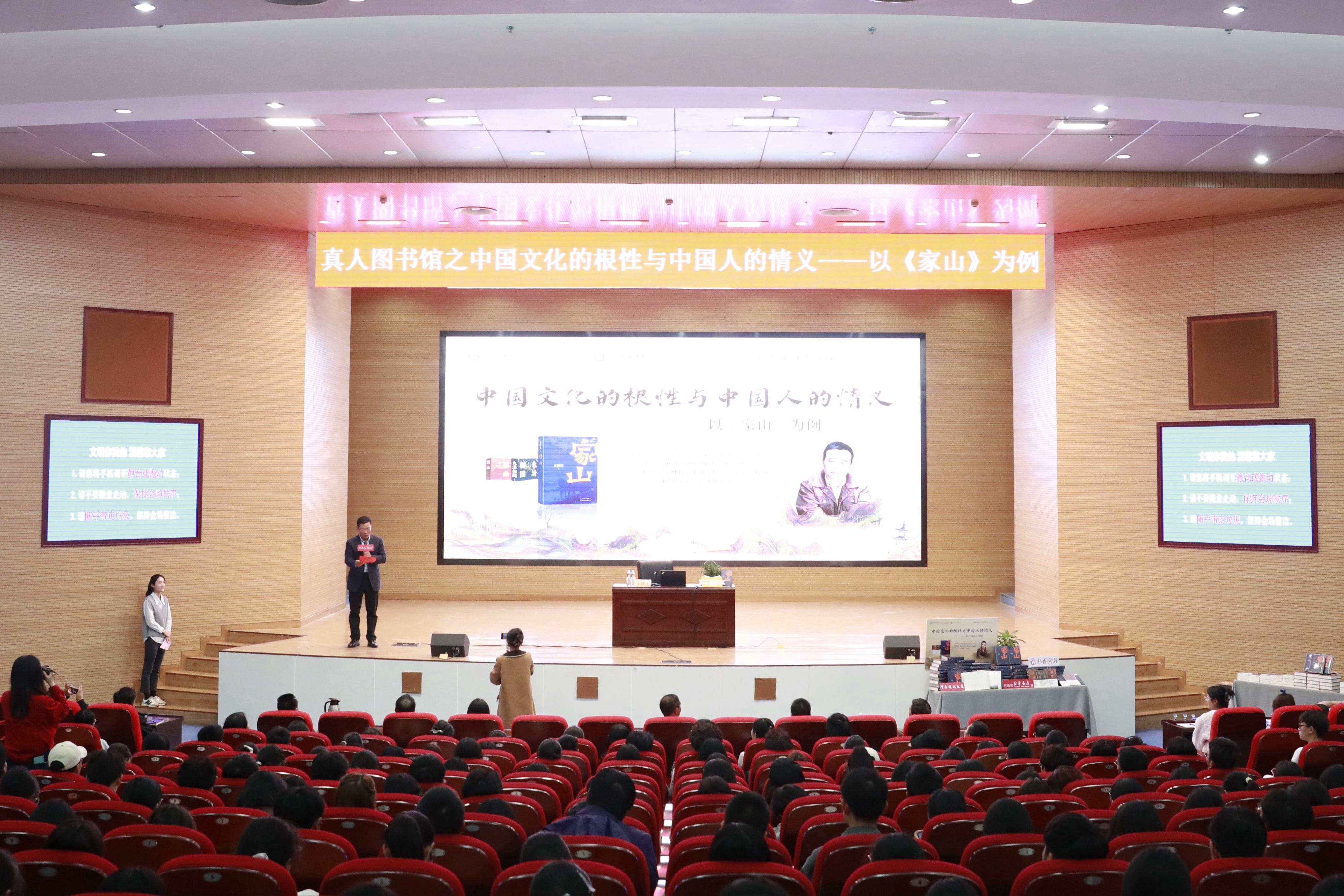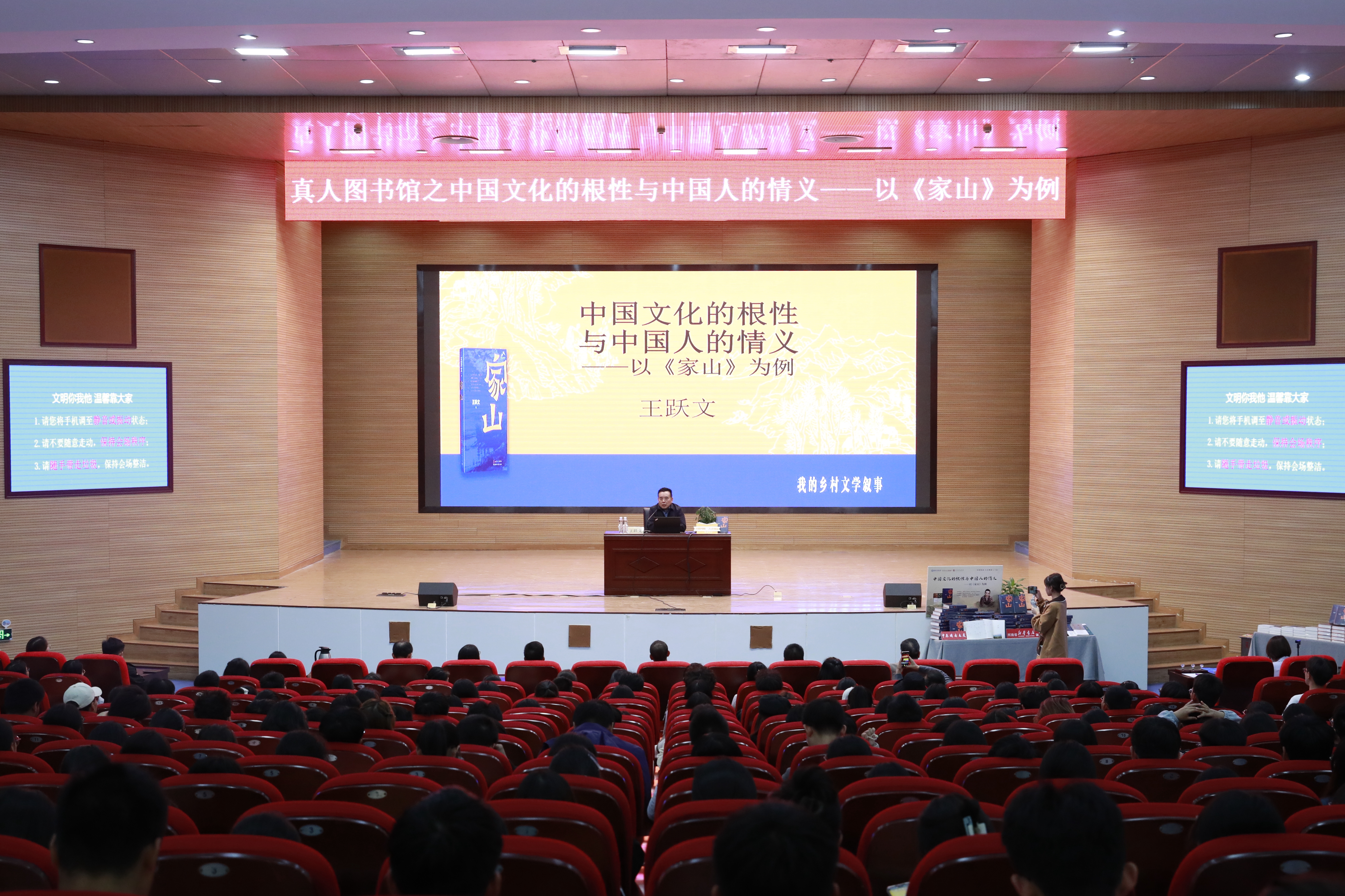 王跃文以“中国文化的根性与中国人的情义”为主题,向大家分享了其新作《家山》的创作灵感、历程以及其中蕴含的深刻思想。他从“讲好故事、刻画好人物、锤炼好语言”三个方面,畅谈乡村文学叙事,将师生们引入充满历史韵味与人文情怀的文学世界之中。