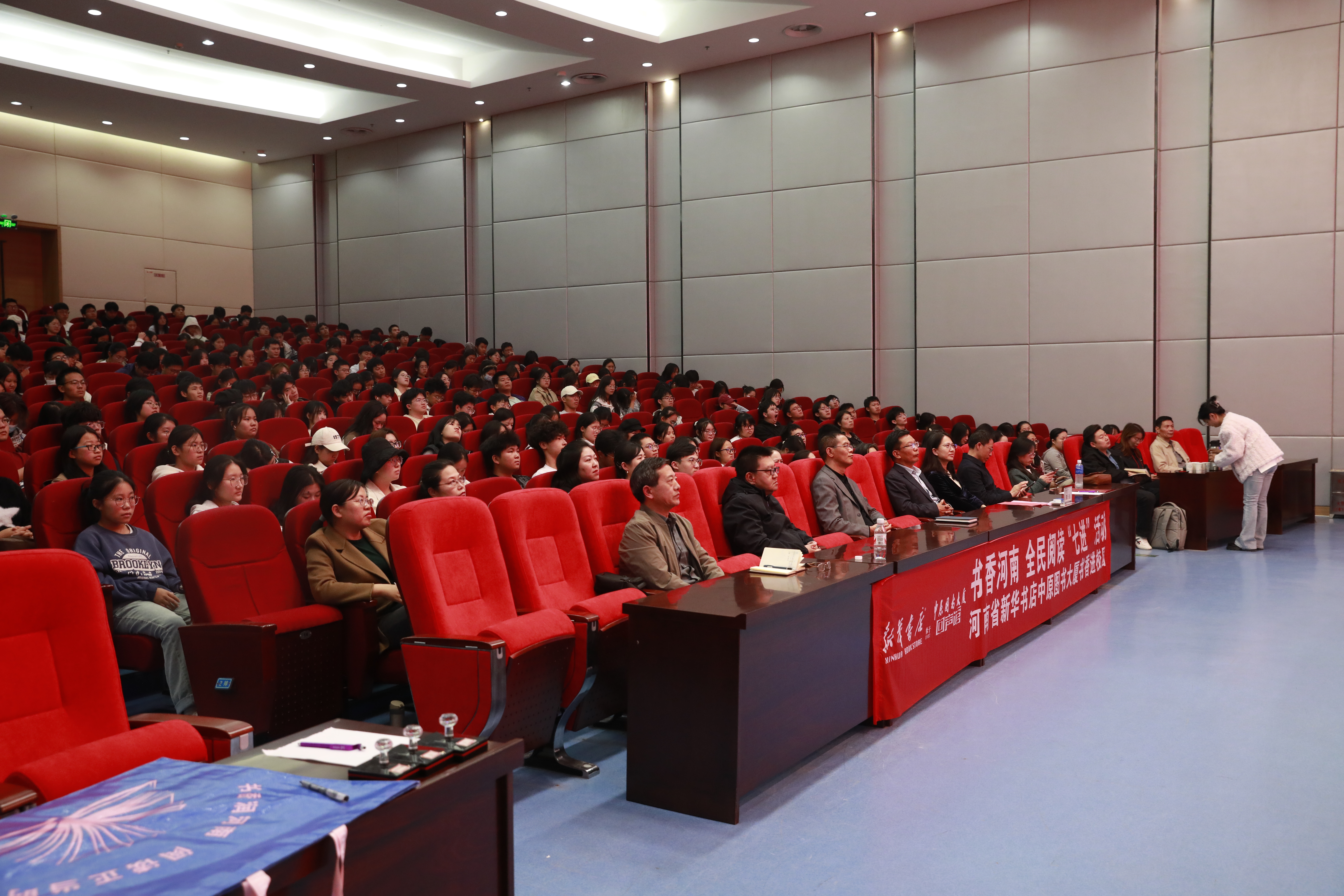 李泽锋在致辞中介绍了学校为贯彻落实党的二十大报告中“深化全民阅读活动”以及河南省委、省政府“书香河南”建设开展的丰富多彩的阅读活动,他希望,本次活动能让师生们更好地理解中国文化和乡土情怀,进一步提升学校的人文底蕴和学术氛围,将书香校园建设推向新的高度。
