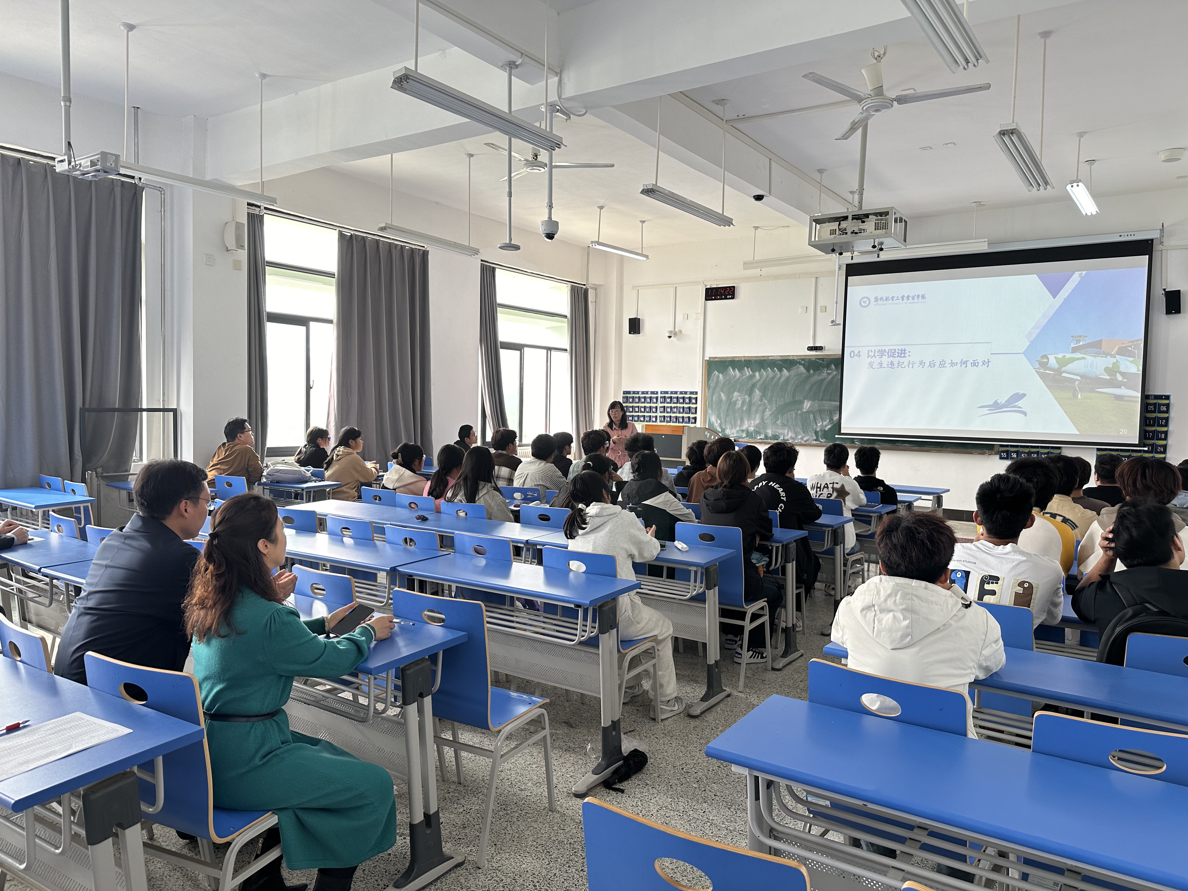 为切实做好学生日常教育管理工作,进一步强化校风学风班风建设,持续推动思想政治教育工作提质增效,10月31日,我校在全校范围内集中开展“大学,让我们从保持‘零处分’开始!”主题班会。副校长张聚伟深入班级检查指导班会开展情况。