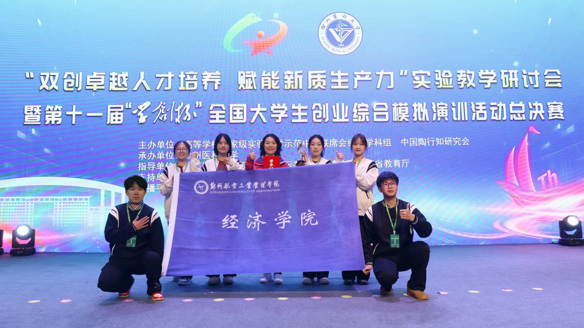 11月1-3日,第十一届“学创杯”全国大学生创业综合模拟演训活动总决赛举行,我校经济学院教师王静娅带领的“焦馬航空队”和“第一航道队”分别斩获全国特等奖和一等奖,“焦馬航空队”全体成员被授予中国大学生“学创之星”荣誉称号。